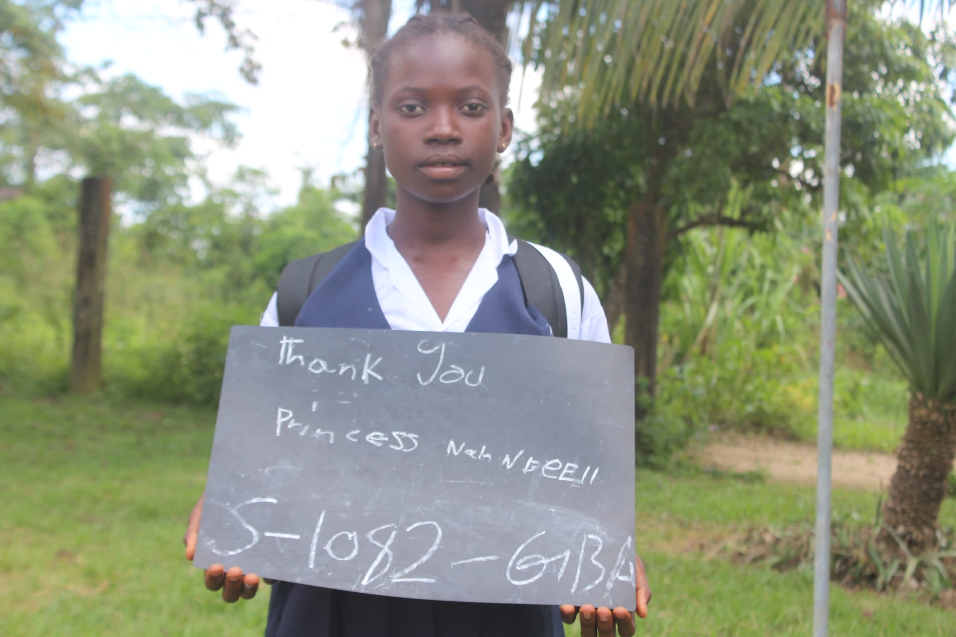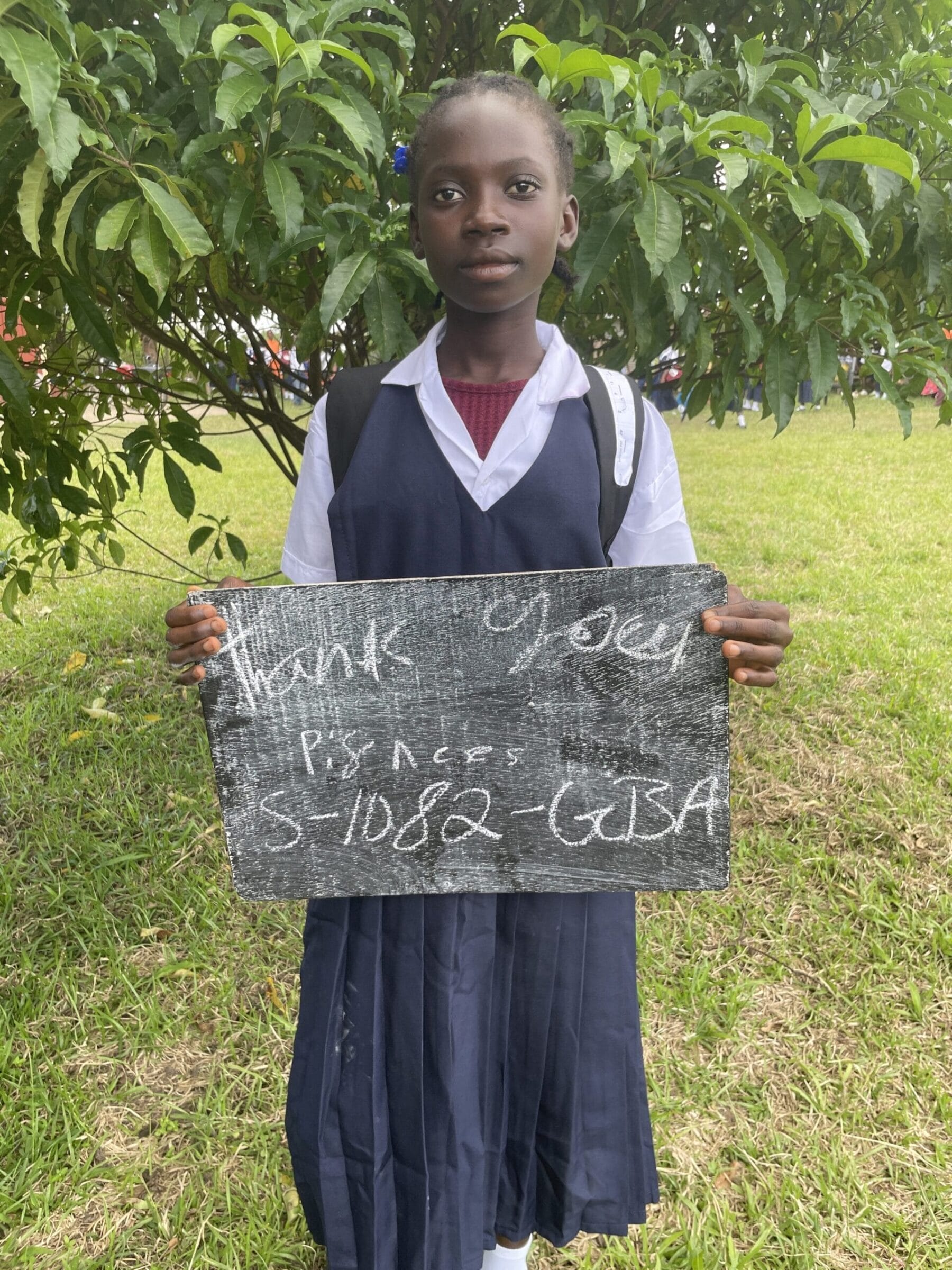 Princess returned for her 2025 school registration and proudly shared that she passed the 1st grade and has been promoted to the 2nd grade. She reported that she improved in her lessons last year and feels happy about going back to school. Princess lives with her mother and says her mother motivates her to keep learning. She shared that Girl Power Africa supports her by helping her stay in school, especially after the loss of her uncle and in an accident a few months ago. Her goal for this school year is to study hard so she can be promoted again, and in the future she hopes to use her education to become courageous and help other students. Princess said she is grateful for the school supplies that help her continue her education. Sponsored by: Tera Reese-Beisbier