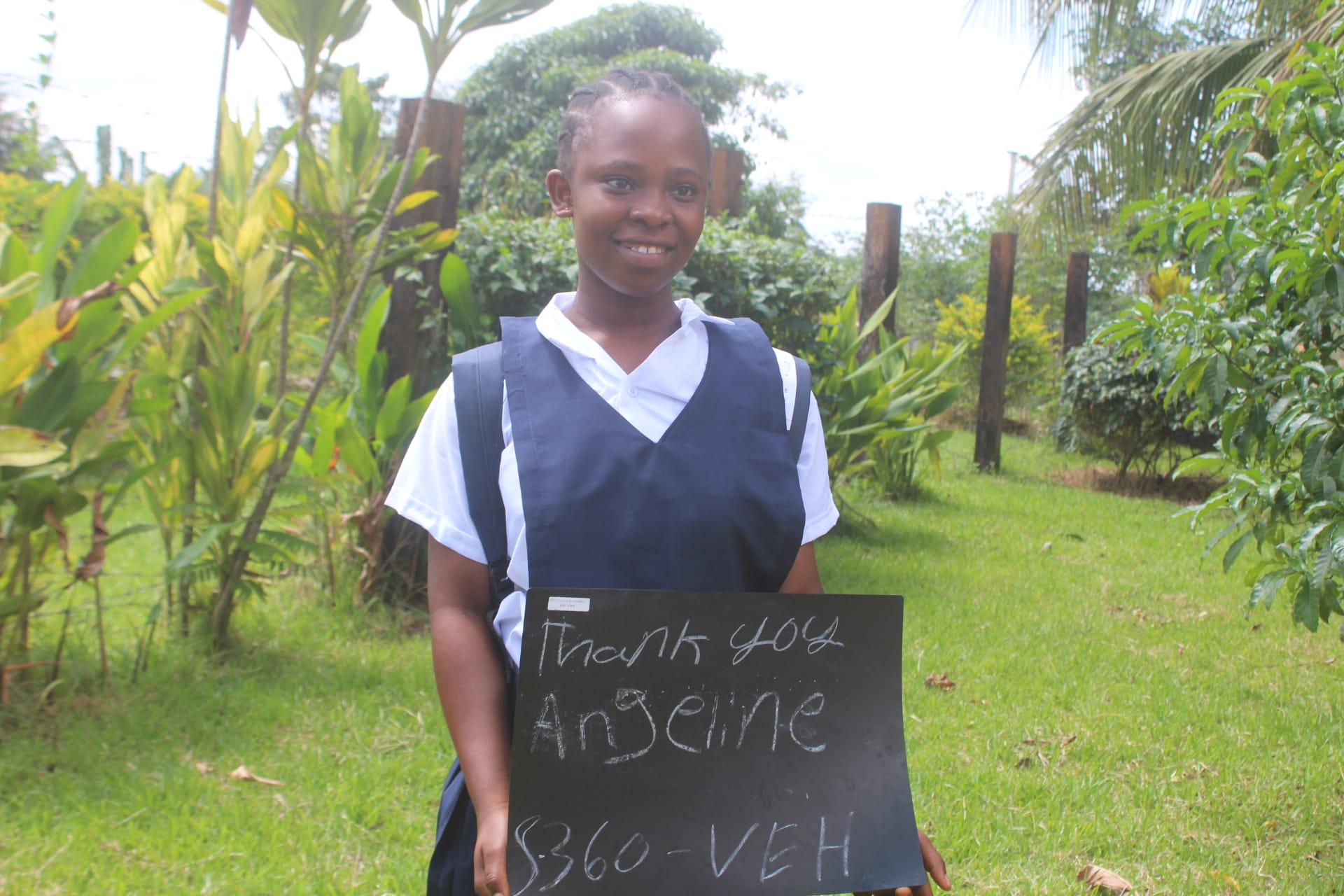Angeline advanced to the fifth grade and excels in English, earning high praise as an outstanding student. She lives with her sister in the village, and after school, she goes home to complete various housework responsibilities, showing dedication both in and out of the classroom. Sponsored by: D’Anna Freiberg