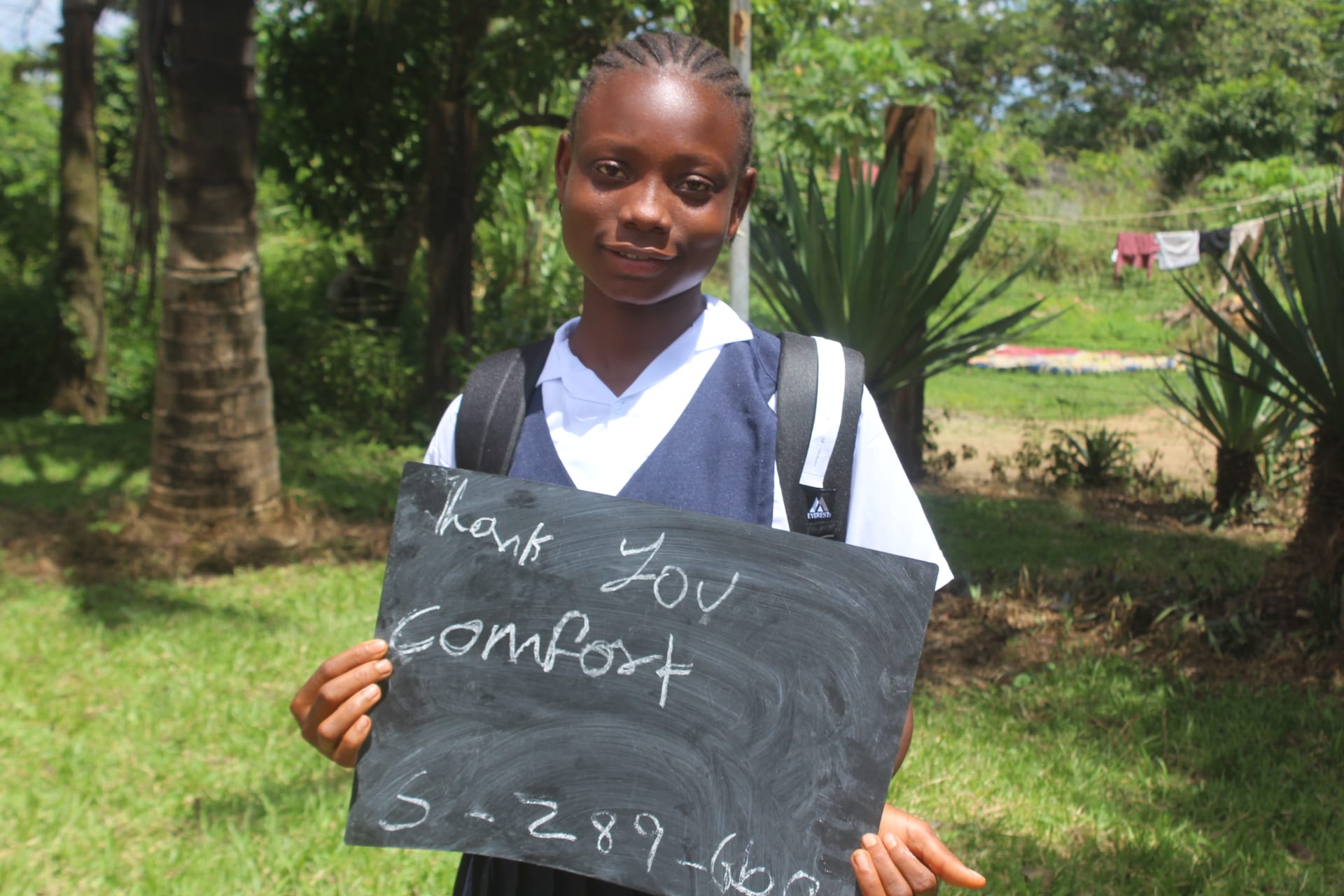 Thanks to the generous donation from Karen King, Comfort has been re-enrolled into school for the 2019/2020 school year.