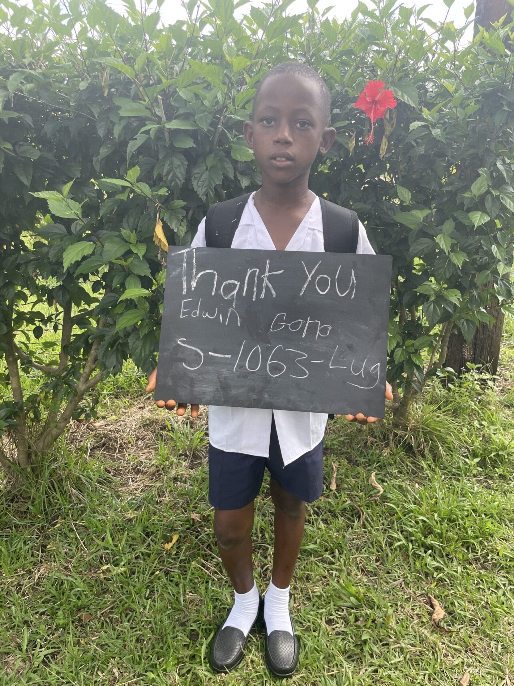 Edwin is now in Grade 4 and successfully passed to the next class. Math remains his favorite subject, and his teacher reports very good performance this year. Edwin shared that GPA’s support with school fees and uniform has helped him continue his education. He hopes to become a class president and is motivated by his teacher. Despite the loss of his father, Edwin remains focused and grateful for the opportunity to stay in school. Sponsored by: Phil Vasby