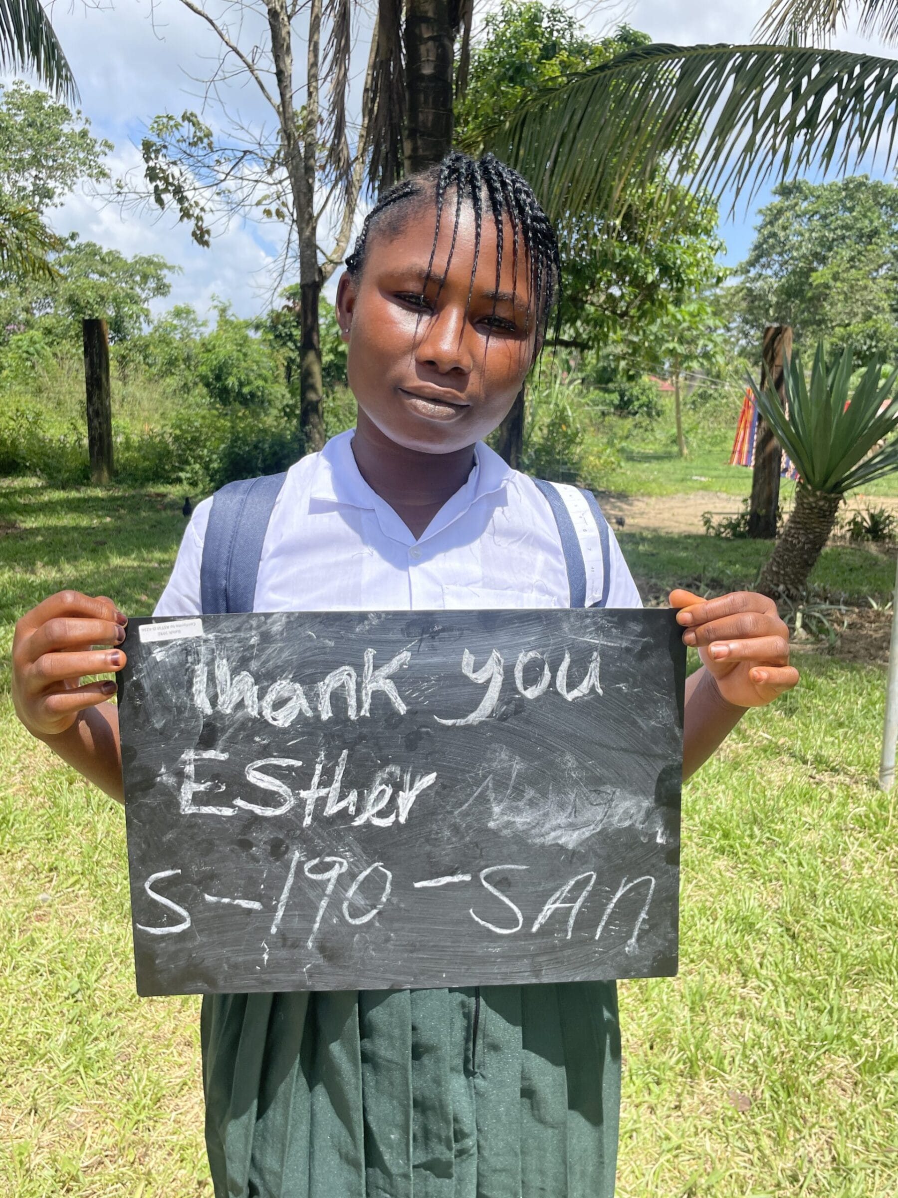 Thanks to the generous donation from Suresh Ilangopal, Esther has been re-enrolled into school for the 2019-2020 school year. We are sad to report that Esther’s father passed away about 8 months ago from malaria. She’s been strong for her mom and is doing her best to help out around the home and farm.