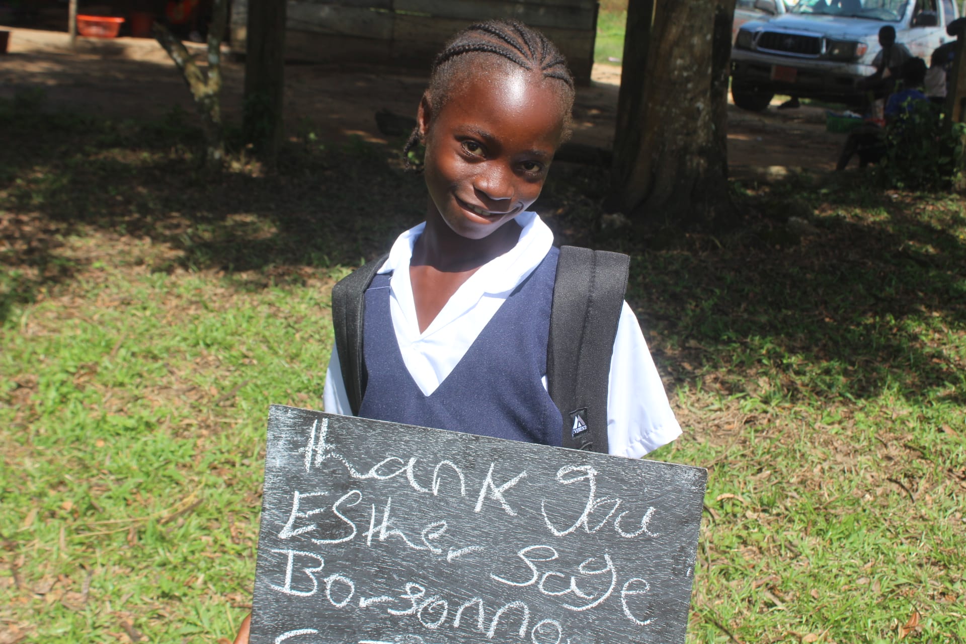 Thanks to the generous donation from Olivia Aerial, Esther has been re-enrolled into school for the 2021/2022 school year. She received an incomplete for the 2020/2021 school year. Due to COVID-19 outbreak, schools in Liberia had irregular school schedule. This combined with the lack of technology in the schools, some schools made the decision to keep students in their current grade level for the 2021/2022 school year. Esther was kept in her current grade level of K-1 grade for the upcoming school year. She continues to live with her father’s friend and still wants to be a teacher when she grows up.