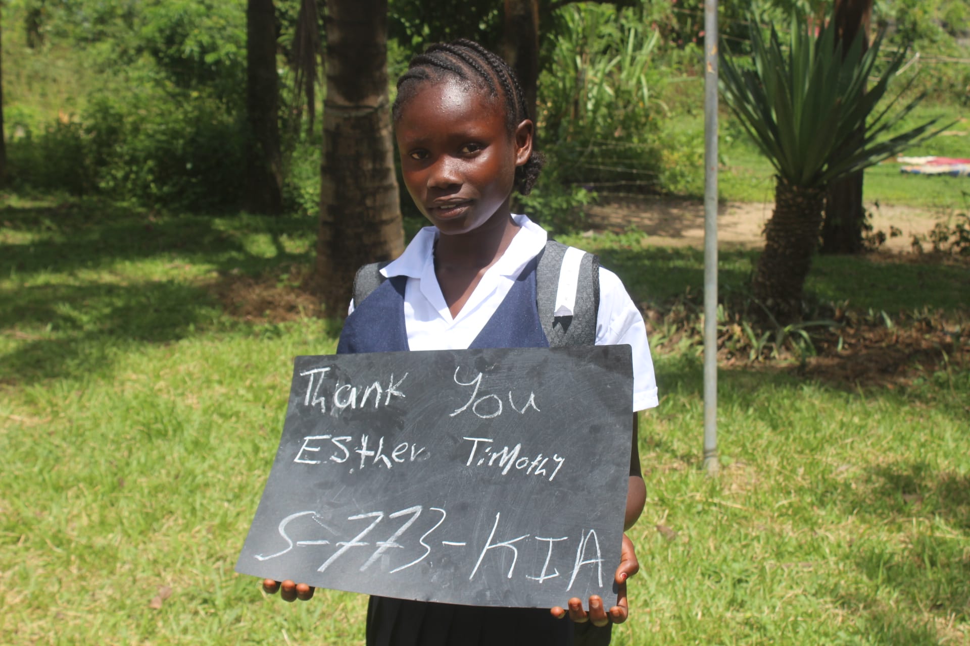 Esther arrived at this year’s distribution full of excitement and pride. With her report card held tightly in her hand, she jumped off the pickup truck shouting, “I passed! I passed! I passed!” Her joy was contagious. Esther has been promoted to the third grade, and she could not have been happier. Math is now her favorite subject, and she is proud of how well she is doing in school. Despite the challenges she has faced, Esther continues to show determination and a strong desire to learn. After her mother fell ill, Esther began living with her aunt, where she helps with household responsibilities while keeping up with her studies. Even with these added duties, she remains focused on her education and deeply grateful for the opportunity to attend school. Esther’s bright smile, excitement about learning, and perseverance through difficulties show just how much this opportunity means to her. She is growing in confidence each year and continues moving closer to her dreams.