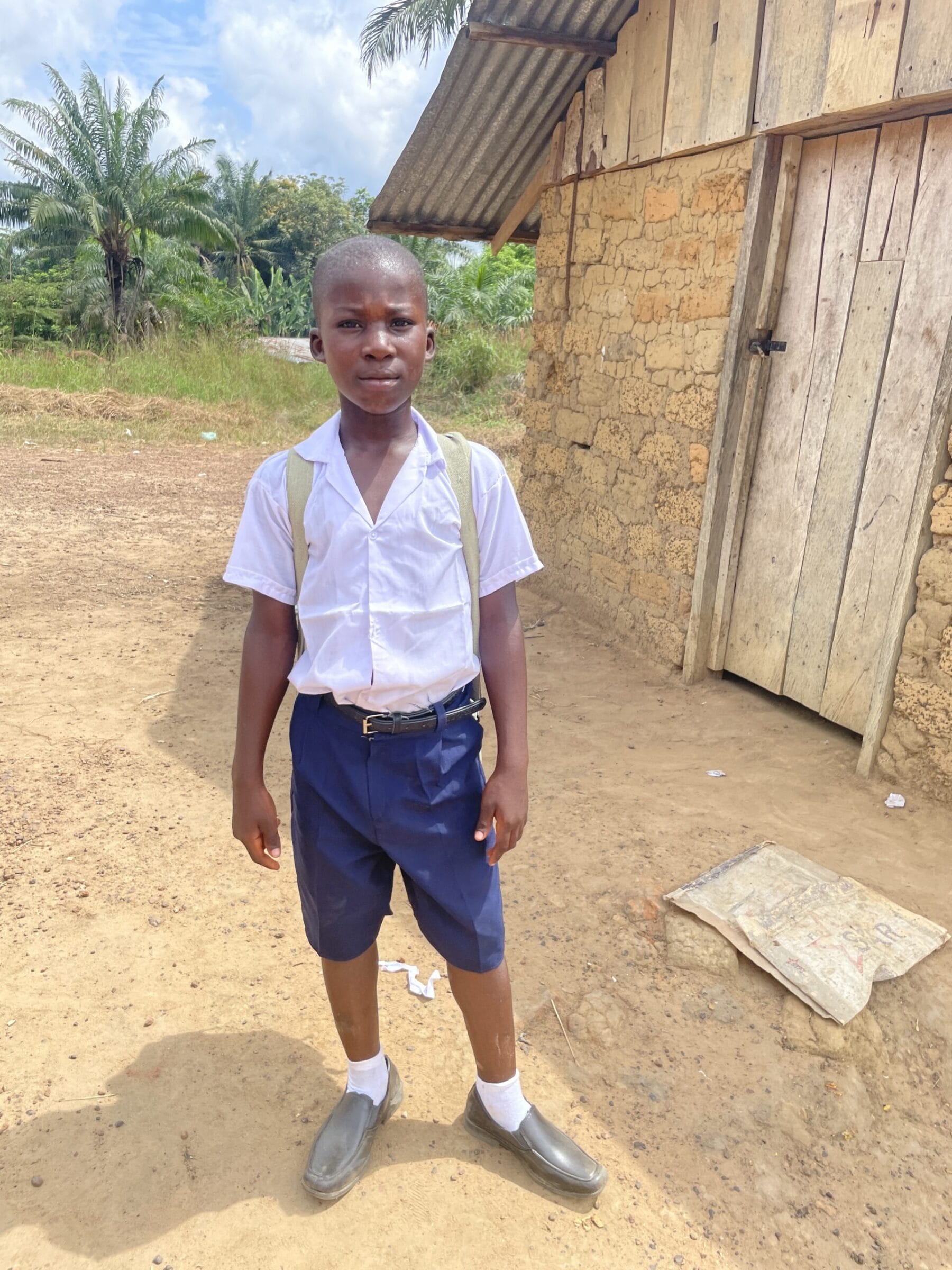 Over the past year, Rufus advanced from 4th grade to 5th grade after successfully passing his exams and showing strong performance, particularly in social studies. He demonstrated academic improvement and remained committed to his studies despite significant family hardship, including his father abandoning the home. With continued support providing school supplies, fees, and shoes, Rufus was able to stay enrolled and focused on learning. He expressed pride in returning to school and shared goals of becoming a leader in his class and pursuing a future in science. Sponsored by: Todd Svanda