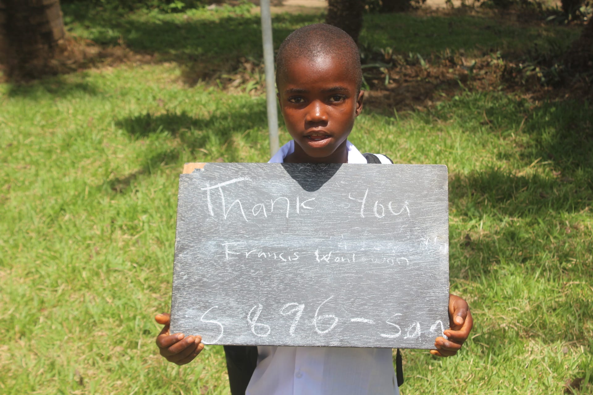 Francis is 7 years old and is attending school for the first time this year. He lives with his mother and father, who have six children in total. Due to financial constraints, Francis and his siblings have not been able to attend school regularly. However, with the help of his scholarship, Francis is now able to pursue his education and fulfill his dreams. Francis has always been passionate about soccer, and he loves playing with his friends during his free time. Despite the challenges at home, his optimistic spirit shines through, and he is determined to make the most of this opportunity. Francis aspires to become a doctor one day, motivated by his desire to help others and make a difference in his community. He continues to live with his parents and looks forward to a bright future through education. Sponsored by: Kerri Phillips