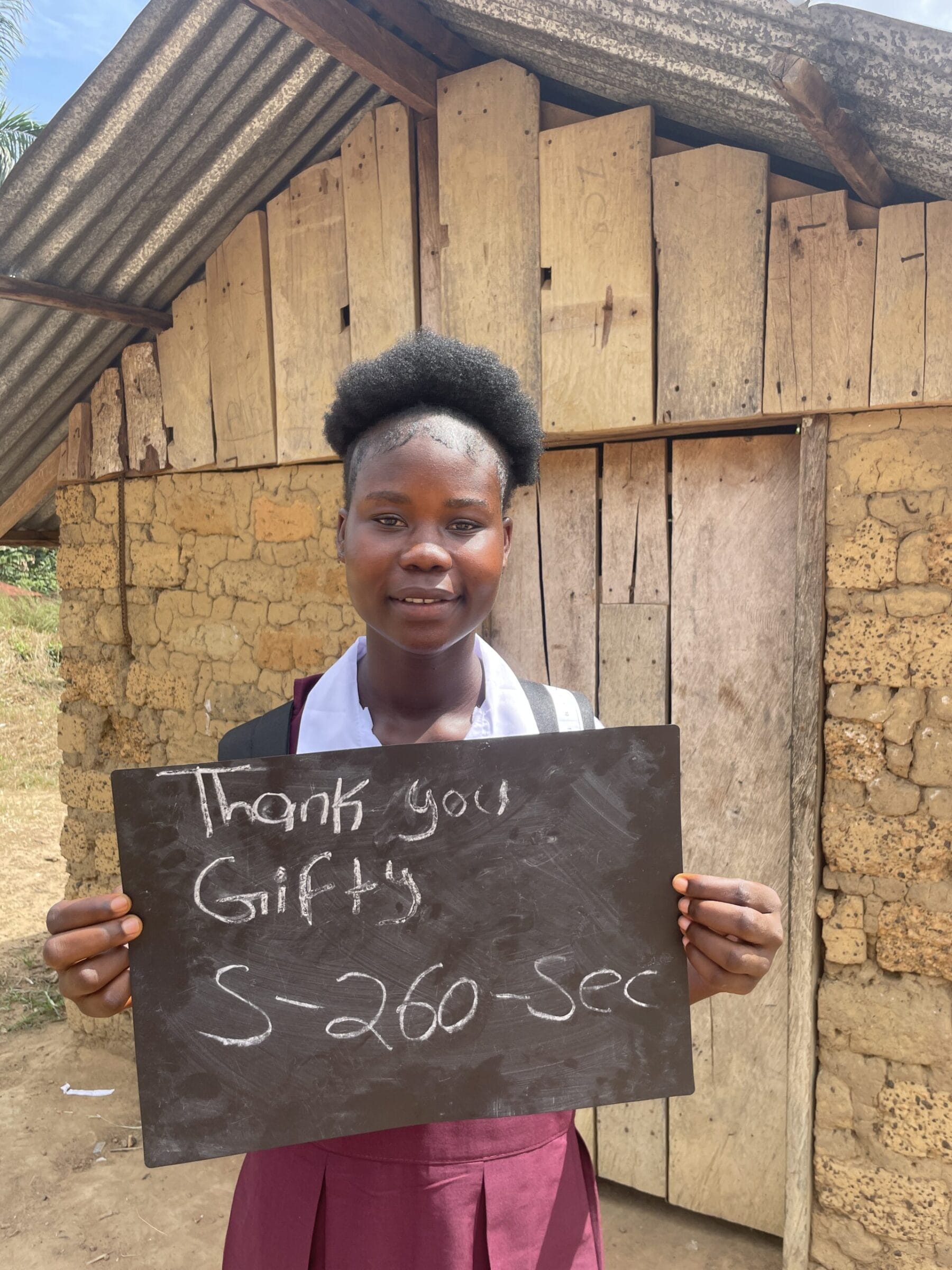 Thanks to the generous donation from Kimberly O’Donnell, Gifty has been re-enrolled into school for the 2019/2020 school year.