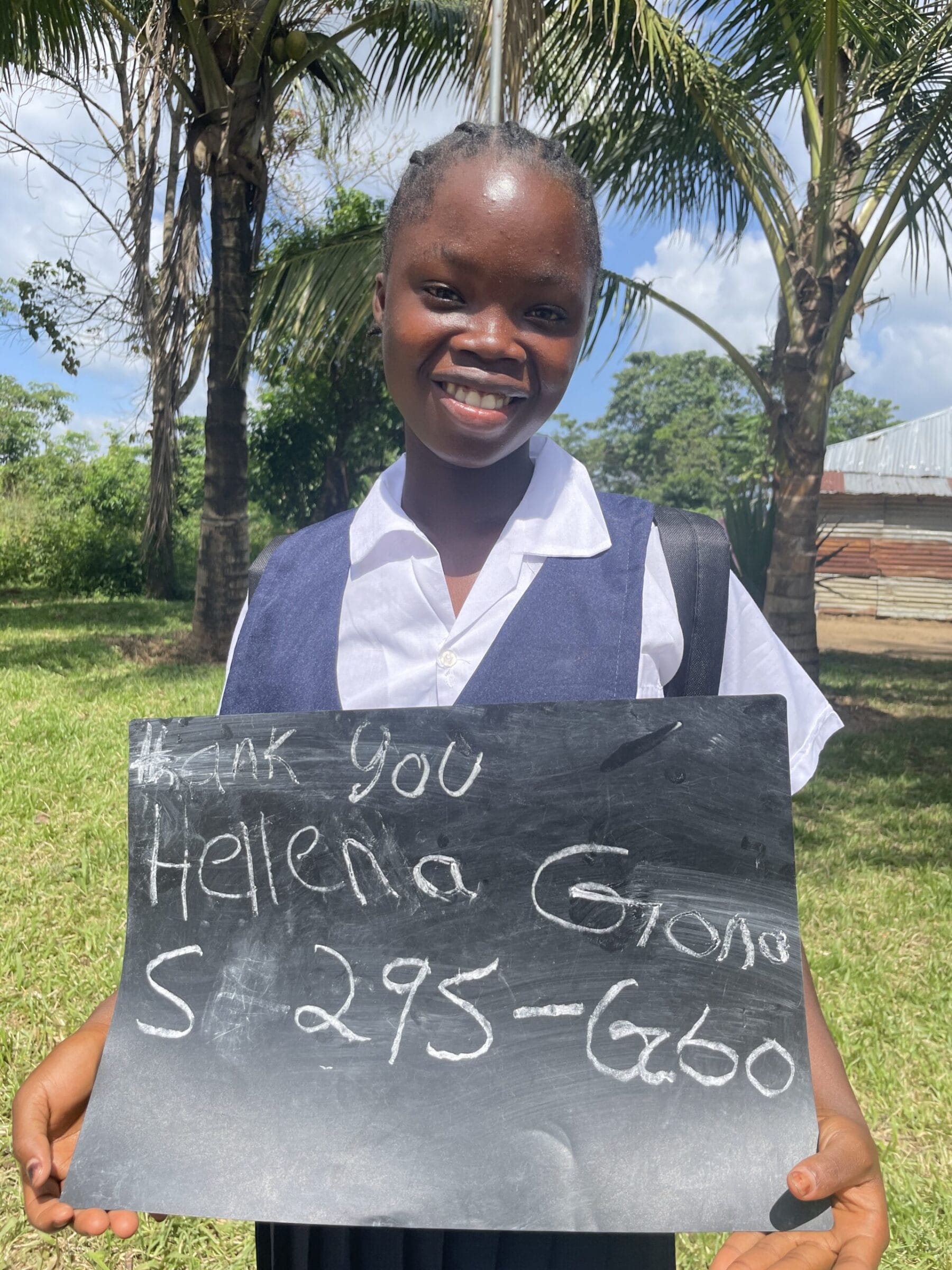 Thanks to the generous donation from Kristen O’Donnell, Helena has been re-enrolled into school for the 2020/2021 school year. She is in the 2nd grade this year and she likes math and to play kick ball at recess. She still wants to be a doctor when she grows up and she continues to live with her mother.