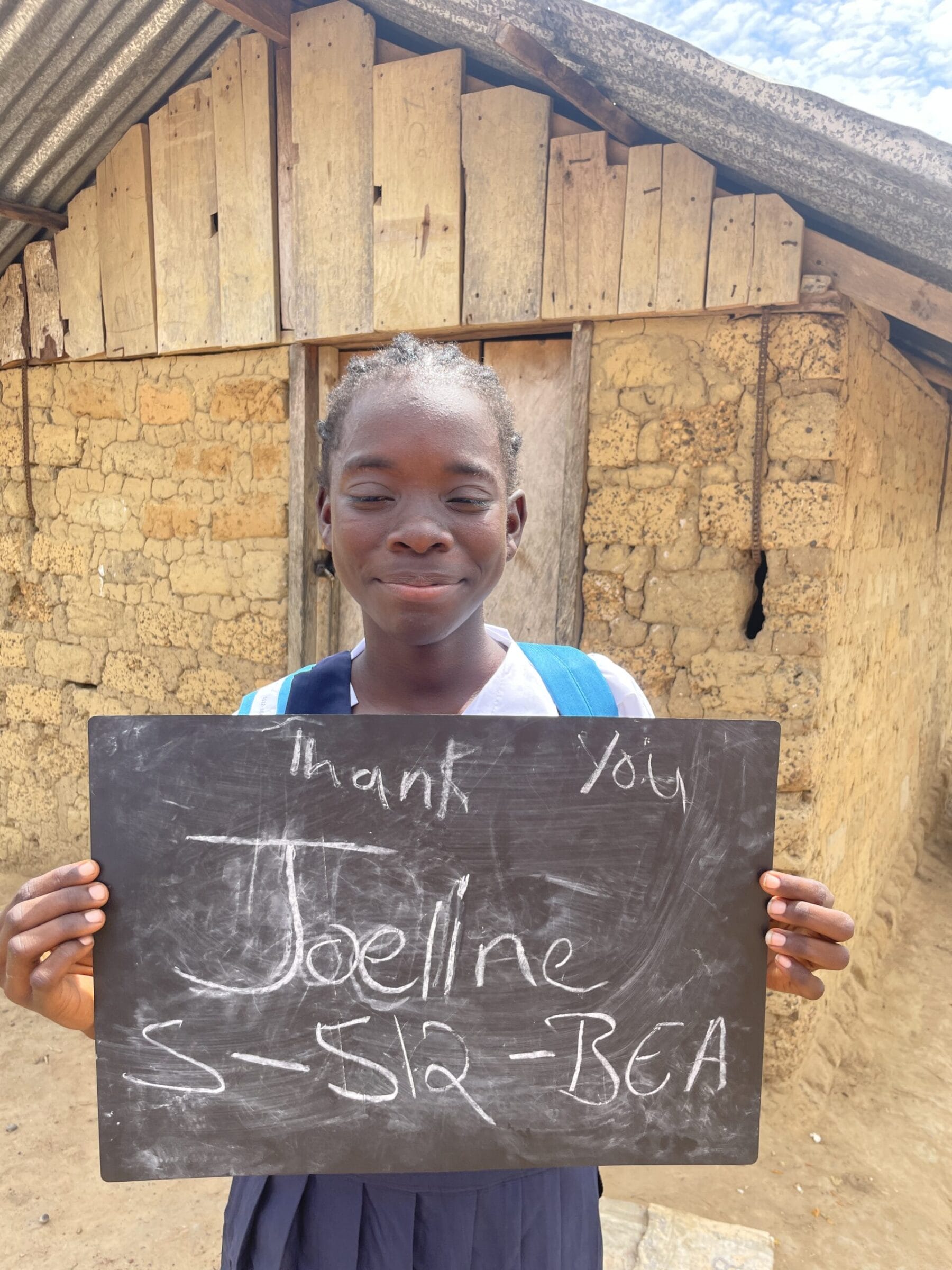 Joeline has been promoted to the fifth grade this year, and she continues to grow as a hardworking and dedicated student. She shared that her favorite subjects are math and science, and her teachers are pleased with the effort she puts into her lessons each day. After school, Joeline’s responsibilities at home are many. She goes to the creek to draw water and bring it home so her family can cook. Once the meal is prepared, she helps clean the house, sweeps outside, and washes the dishes. Only after completing her chores does Joeline sit down to focus on her studies in the evening. Joeline continues to live with her grandmother, who is deeply grateful for the opportunity her granddaughter has been given to attend school. Despite the daily challenges she faces, Joeline remains committed to her education and is determined to succeed. Thank you for supporting Joeline and helping her continue her journey toward a brighter future. Sponsored by: Joyce Jorgensen