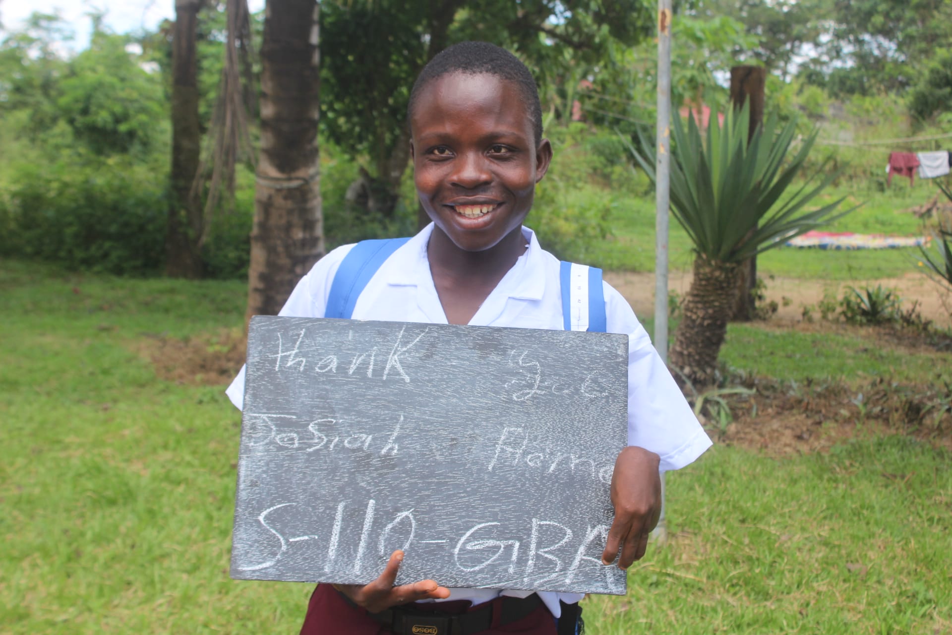 Josiah has been generously re-sponsored by Lori Fischer Hall and family. He is 15 years old and was promoted to the 4th grade this year. He lives in Gbapa, Liberia with his mother.