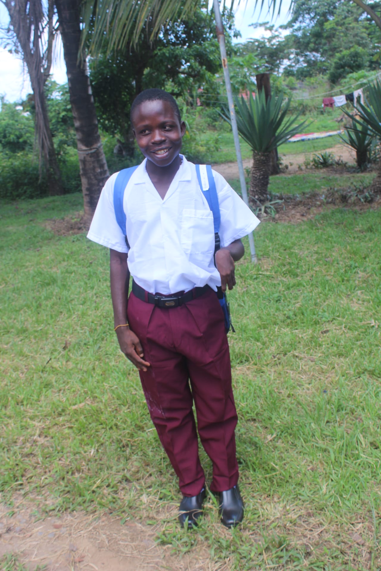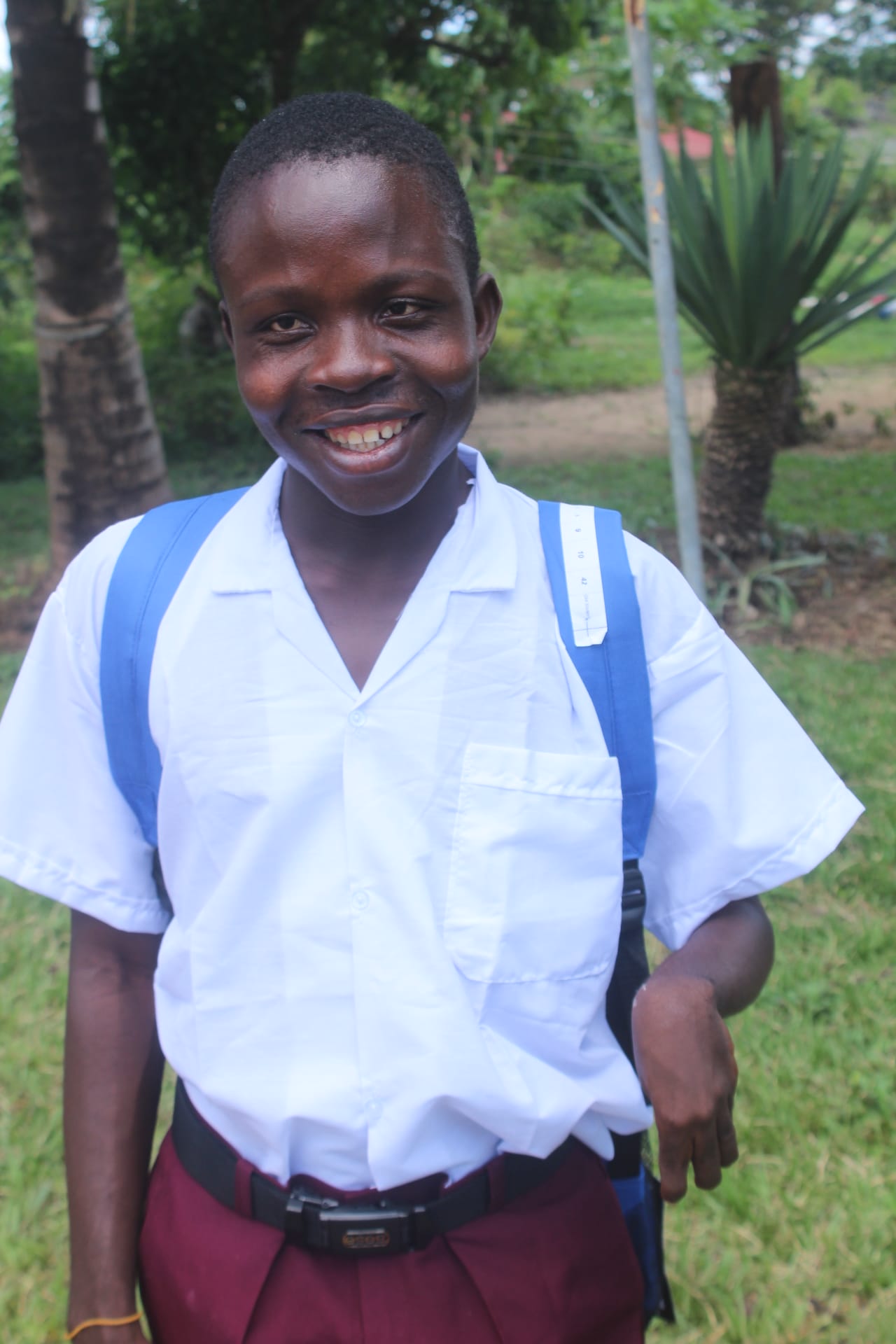 Josiah was promoted to the 9th grade this year. Due to financial hardship, his mother could no longer afford to send him to school, so he was sent to live with his aunt. Since moving in with his aunt, Josiah has lost a lot of weight due to malnourishment, as his aunt also faces many financial struggles and responsibilities. Despite these challenges, Josiah remains a very hardworking student. He is disabled, but his commitment to his education is unwavering. He is extremely grateful for the opportunity to attend school, even though his situation makes it difficult for him to get the nutrition he needs. Josiah continues to push through, and his dedication is truly inspiring. Sponsored by: Jolene McNamee Ibeling
