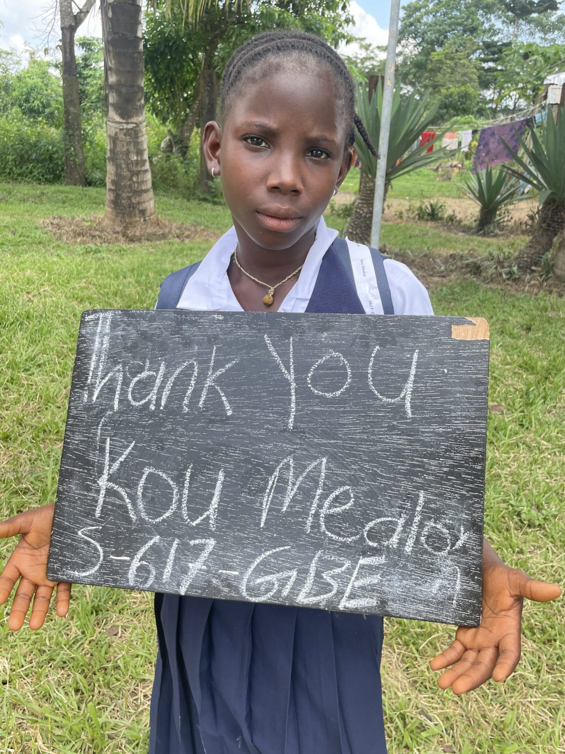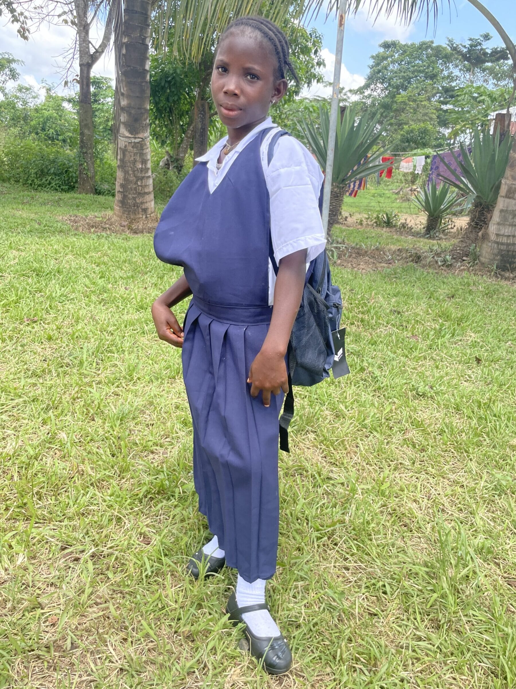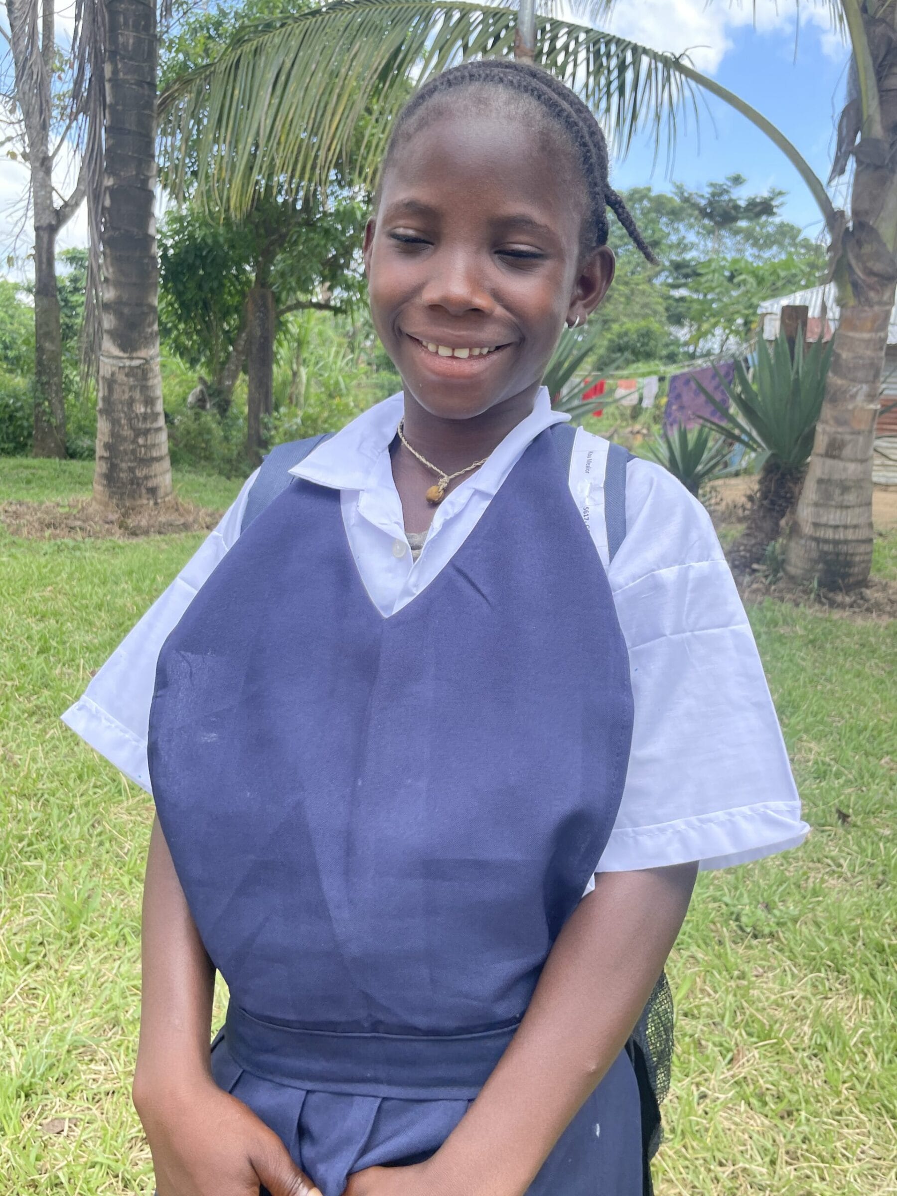 Meet Kou, who has been generously sponsored by Lori Fischer Hall. She is 6 years old and is going to school for the first time in ABC (pre-kindergarten). She lives in Gbayden, Liberia with her mother’s friend. Kou’s mother passed away from malaria about a year ago. After her death, Kou’s mom’s friend took she and her sister in to take care for. Her interests are playing with her sister and she hopes to be a nurse when she grows up.