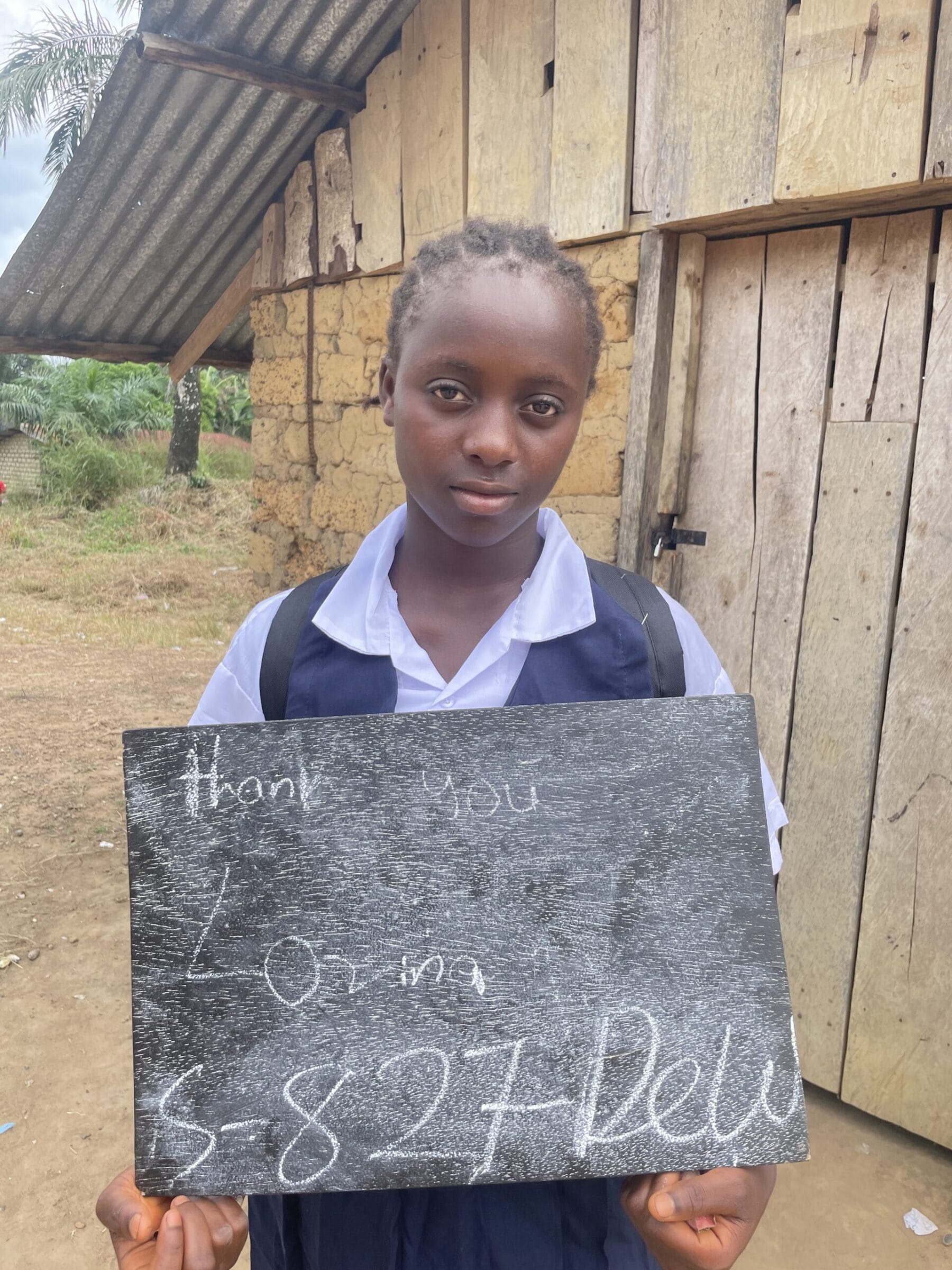 Lawrenna has been promoted to the second grade and continues to live with her parents. She still dreams of becoming a police officer one day. Lawrenna shared her after-school routine: “First, we walk to the riverside to get water. Then we go home, make a fire, and cook. After cooking, we eat, go back to the river for more water to wash the dishes, and then clean up and take a bath. After that, we do our homework, play a little, then pray, and go to sleep.” Sponsored by: Serena Bales