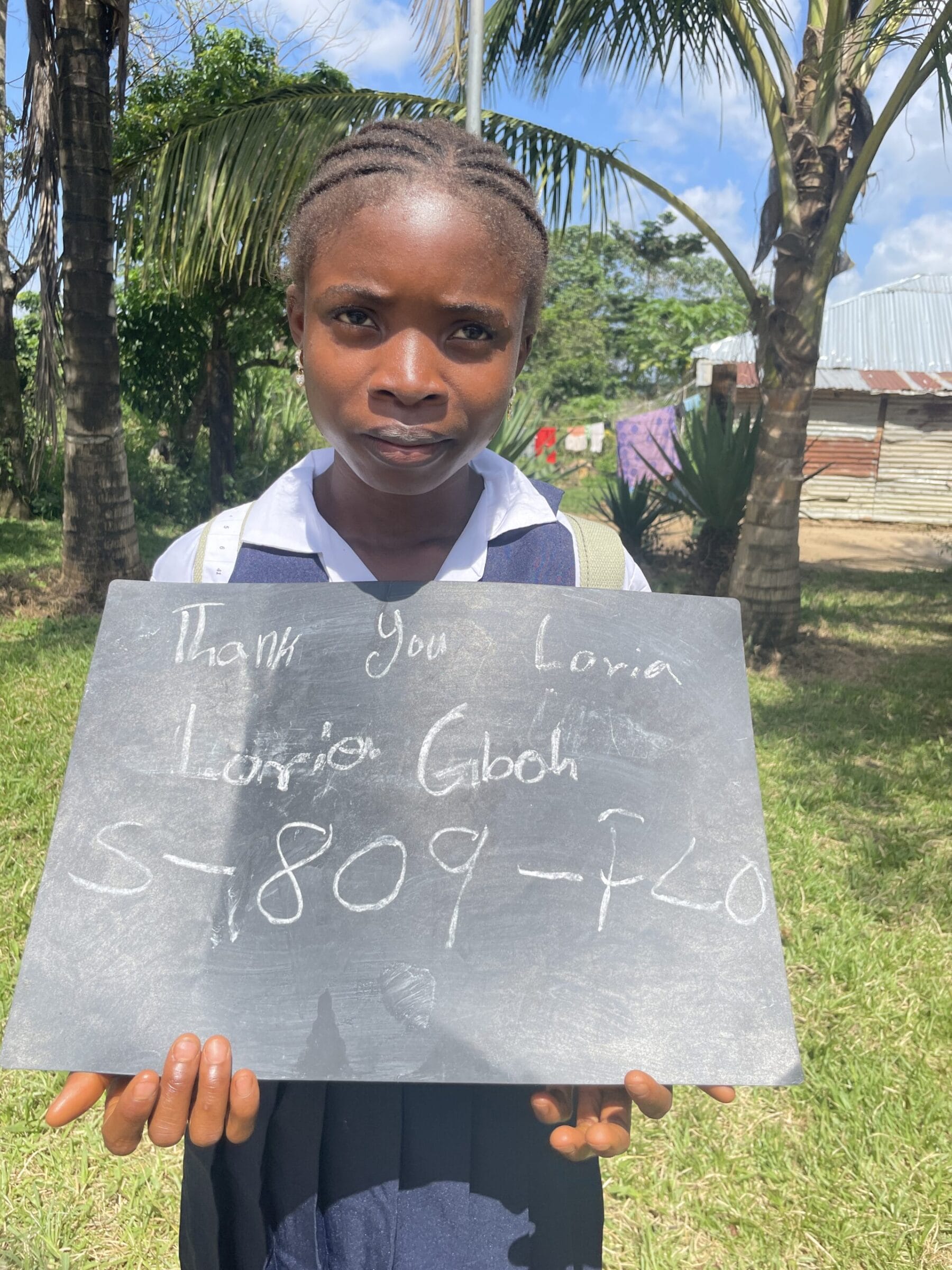 Lorina resides with her big sister and four extended family members in Flowin, Nimba County. Lorina is active in school as her class vice-president. Her parents passed away and her big sister took her in. She wants to be a doctor one day and is thankful for the gift of a scholarship. Sponsored by: Patty Glennon