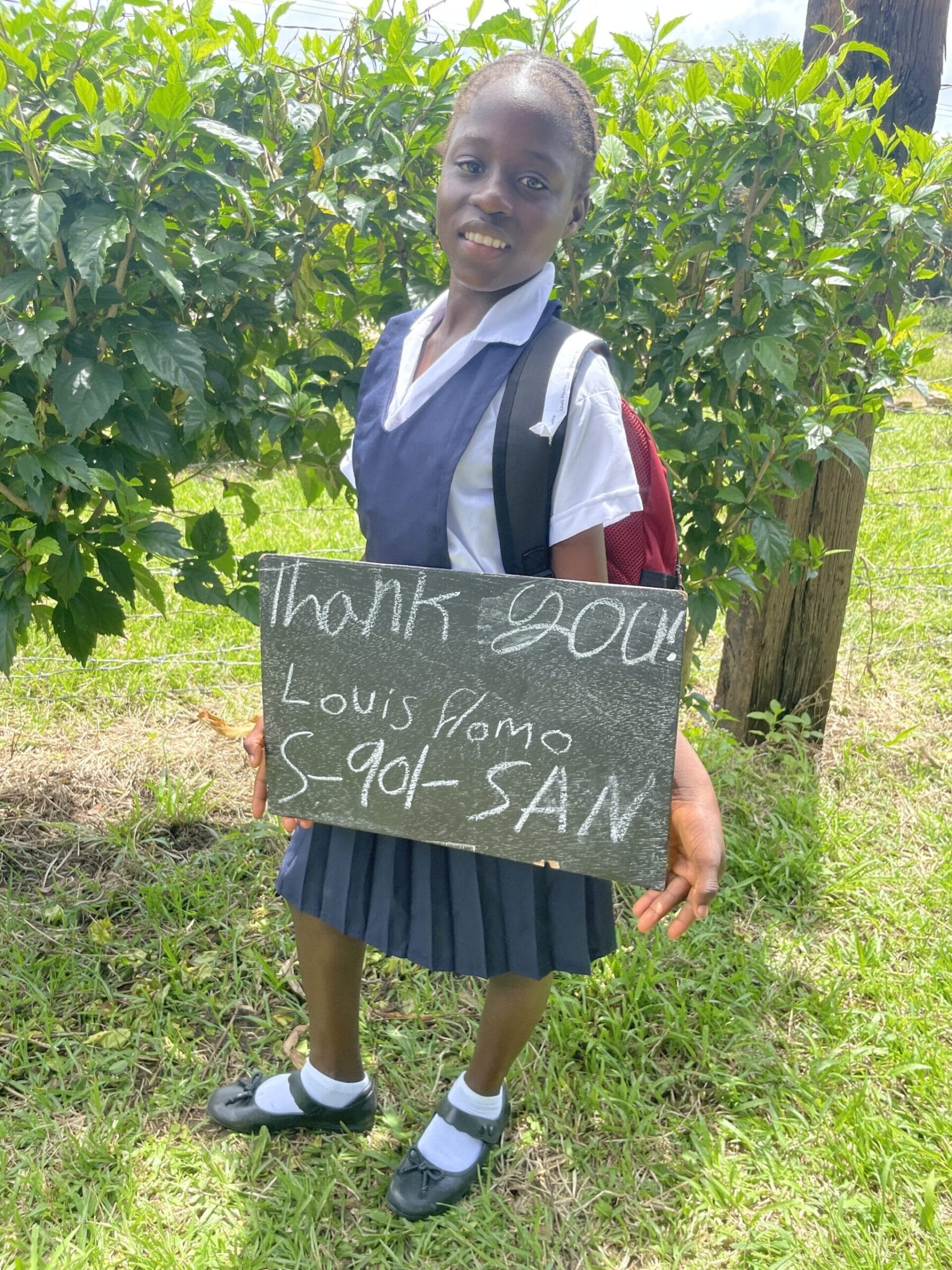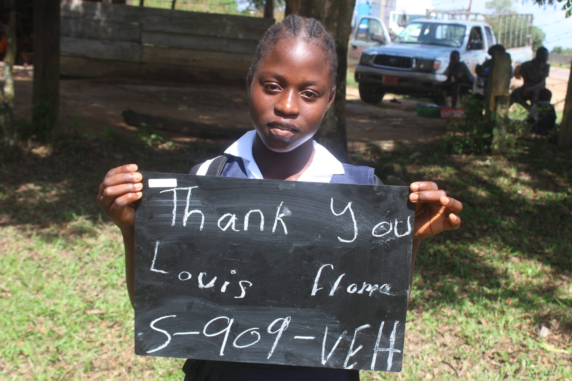 Louis is 11 years old, in the 4th grade and lives with her grandmother. She loves math and is known for being a very serious and hardworking student, as praised by her teacher. At home, Louis helps her grandmother with the daily chores, including washing the dishes, drawing water, and cooking. Despite the challenges she faces, Louis remains dedicated to her studies and contributes to her family in every way she can, all while dreaming of a brighter future through her education. Sponsored by: Nancy Schrock