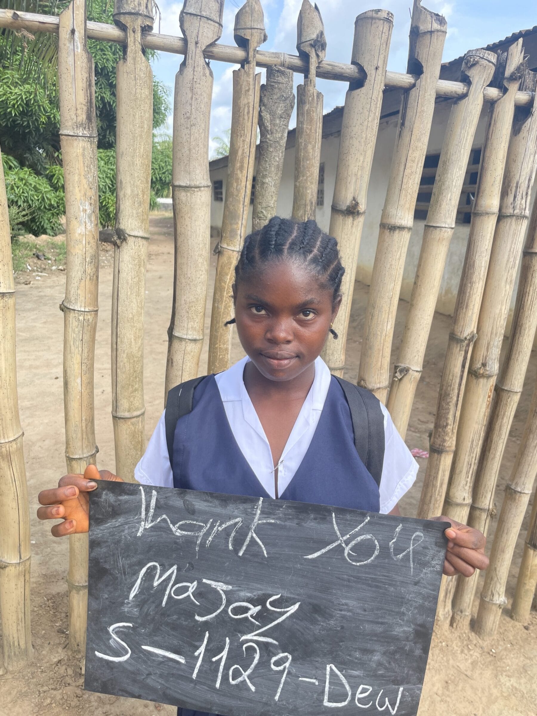 Majay is a new student who is currently in 4th grade. She shared that both of her parents have passed away, and she is now living with her aunt in a household of five. Although she has been attending school, her aunt has been struggling to support her and pay for school needs as a single guardian. Majay helps at home by cooking and cleaning, and she said GPA’s support would help her continue her education. She is described as a good student who wants to keep learning, and she hopes to become a businesswoman one day so she can support her community. Sponsored by: Monique Whitney
