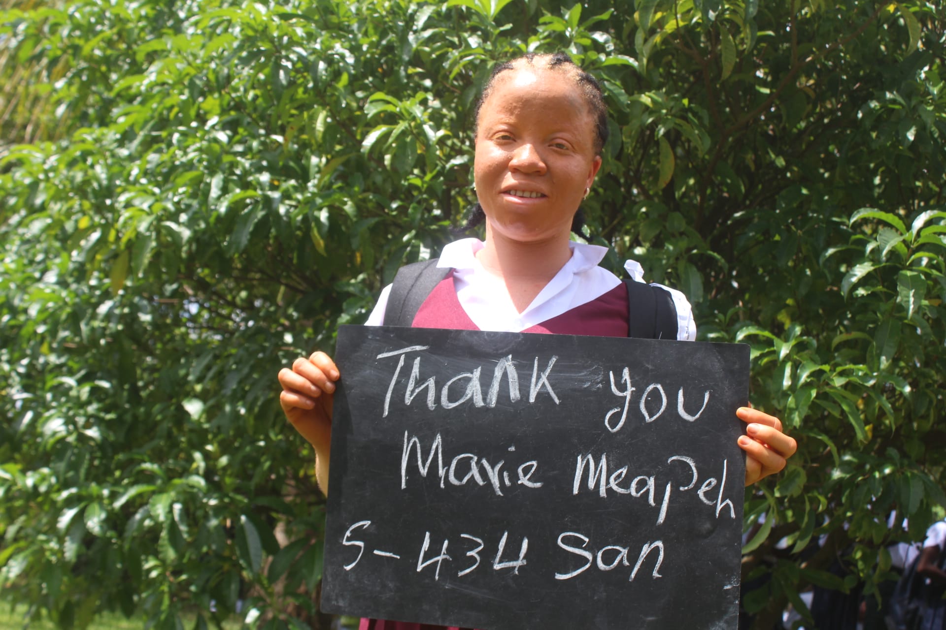 Marie is repeating the 10th grade this year after having to drop out last year to care for her sick mother. Despite these challenges, Marie has shown incredible resilience. English is her favorite subject this year, and she is very grateful for the opportunity to continue her studies. At home, Marie takes on the responsibility of cooking for the family. After school, she draws water from the creek, buys food at the market, and then prepares the meal before the family eats. From the moment she wakes up until late afternoon, she often goes without food herself due to the difficulties at home, but she remains grateful and hardworking. Being an albino student, Marie has faced a lot of challenges. Albinos in Liberia are often mocked and teased, and many people view them as abnormal. However, thanks to the support from Girl Power Africa, Marie’s confidence has grown tremendously. Her self-esteem is at an all-time high, and she is now highly respected at her school. In fact, this year, she was voted class president by her peers, a clear testament to the admiration and respect she has earned. Despite all the obstacles in her way, Marie continues to rise, determined to succeed and make the most of every opportunity. Sponsored by: Jennifer Suda
