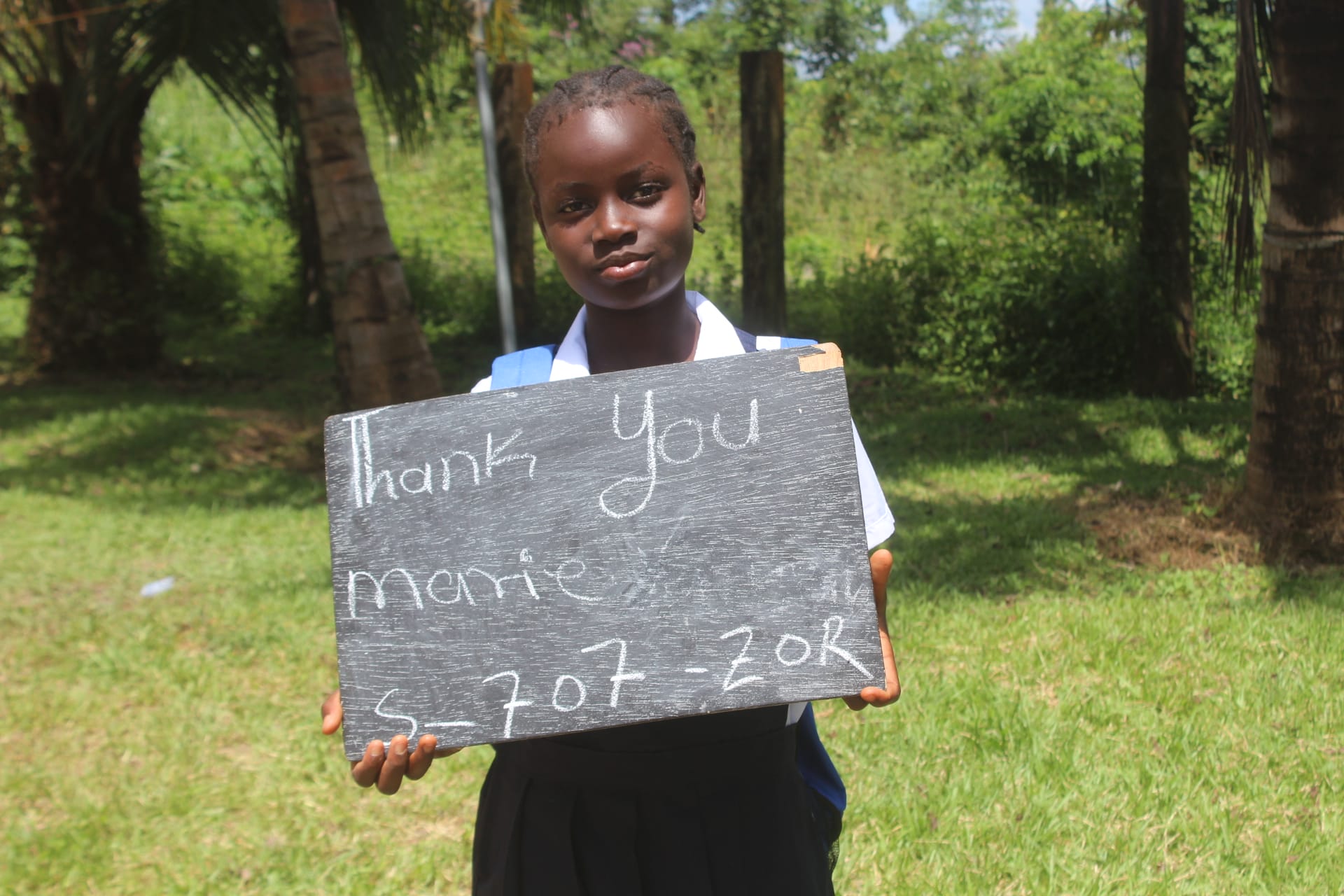 Meet Marie, who has been generously sponsored by an Anonymous donor (Mohamad). She is 6 years old and is in the K-1 grade this year. She lives in Zorgowee, Liberia with her grandmother. Both of her parents are farmers with 9 children. They do not make enough money to send their children to school. Marie was given to her grandmother to live. Her interests are playing with her friends and she hopes to be a medical doctor when she grows up.