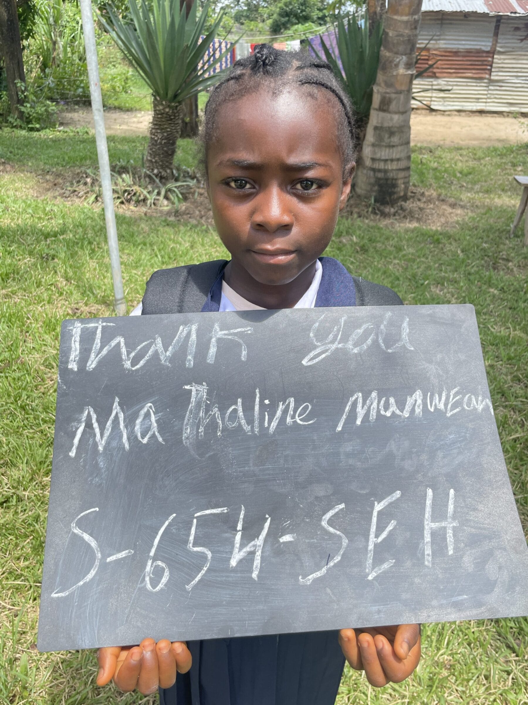 Thanks to the generous donation from Joyce Jorgensen, Marthaline has been re-enrolled into school for the 2021/2022 school year. She received an incomplete for the 2020/2021 school year. Due to COVID-19 outbreak, schools in Liberia had irregular school schedule. This combined with the lack of technology in the schools, some schools made the decision to keep students in their current grade level for the 2021/2022 school year. Marthaline was kept in her current grade level of K-1 grade for the upcoming school year. She continues to live with her grandmother and still wants to be a teacher when she grows up.