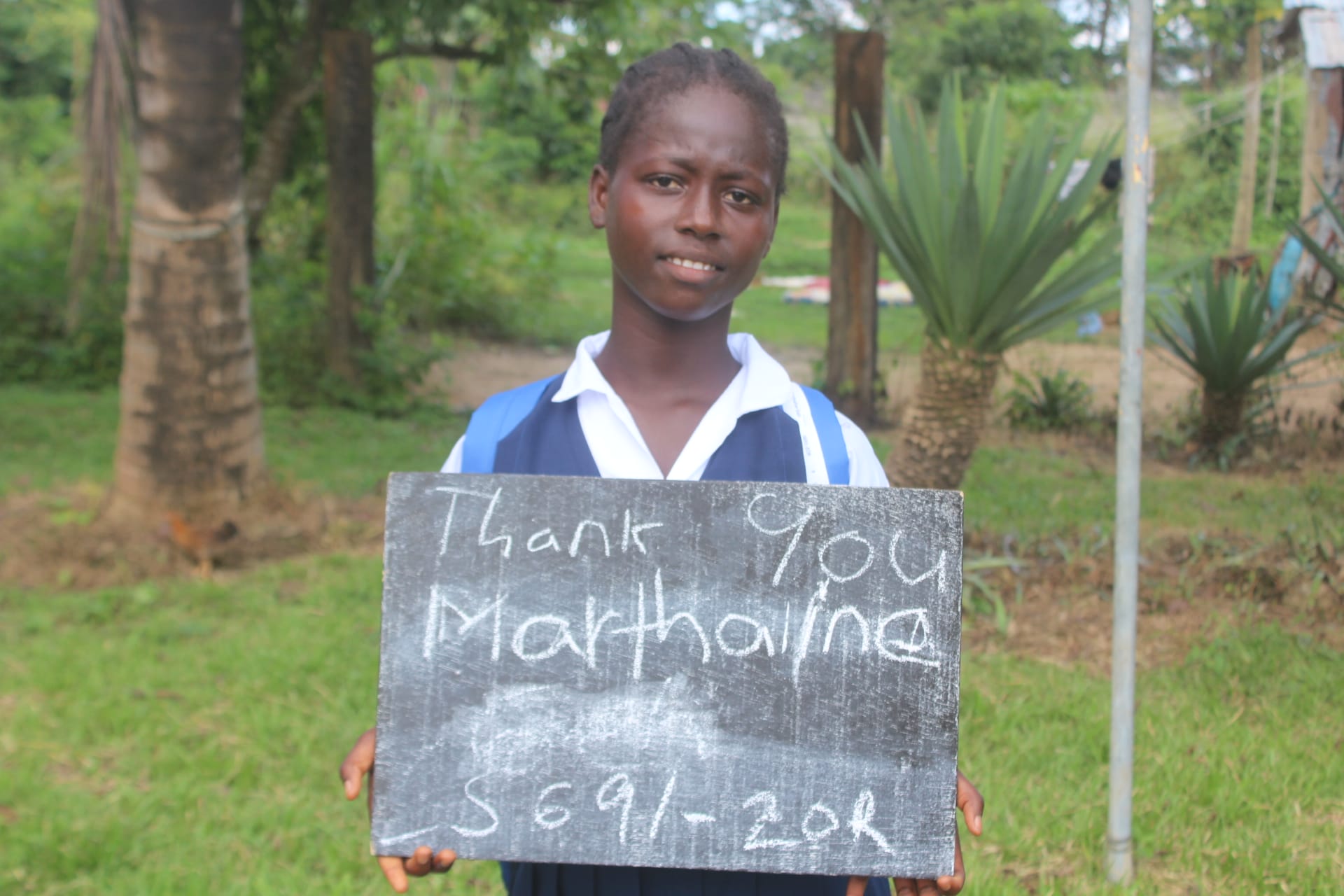 Meet Marthaline, who has been generously sponsored by an Anonymous donor (Mohamad). She is 9 years old and is in the K-2 grade this year. She lives in Zorgowee, Liberia with her mother. Marthaline’s father and mother separated when she was 2 years old. He father has never been a part of her life. Her interests are playing with her friends and she hopes to be a police officer when she grows up.