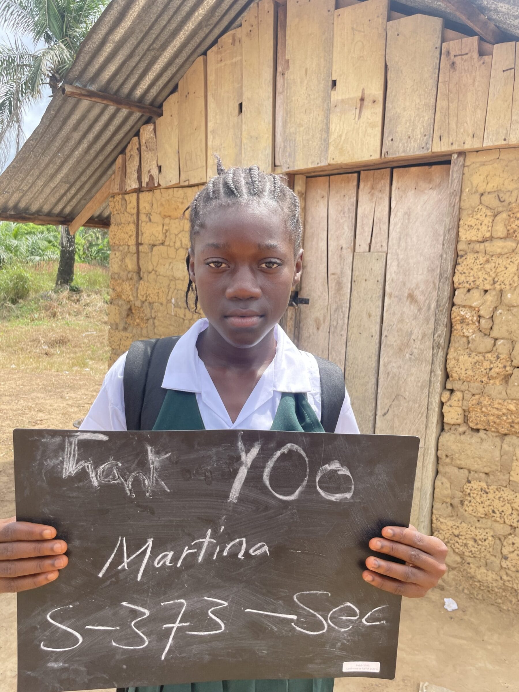 Martina was promoted to the 5th grade this year, and she continues to be a dedicated student with a strong passion for science. After school, her day is far from over. She heads to the well, where she draws about 15 gallons of water and brings it back home. Once at home, Martina helps with cooking, cleaning, and managing other household chores. Only after all these tasks are done does she settle down to do her homework. Despite the long hours of work at home, Martina remains a serious and hardworking student. She values her education deeply and is extremely grateful for the opportunity to attend school. Her dedication to both her studies and her family is admirable, and her teachers recognize her commitment to learning. Martina is a wonderful example of resilience, responsibility, and gratitude. We’re so proud of her.. Sponsored by: Lakeya Bullard