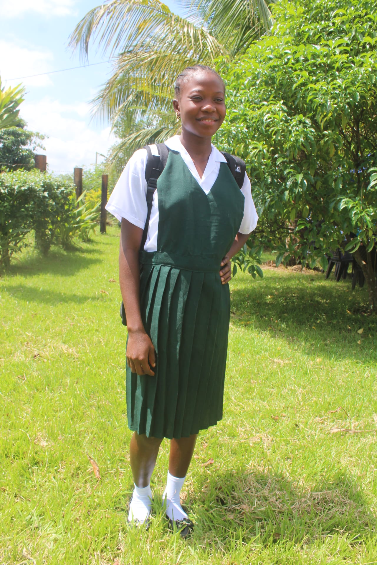 Maroline has advanced to the seventh grade, performing exceptionally well and showing a strong drive to continue her education. She is deeply committed to improving her studies, devoting her full attention to academics due to limited parental care at home. Sponsored by: Natalie Buhl