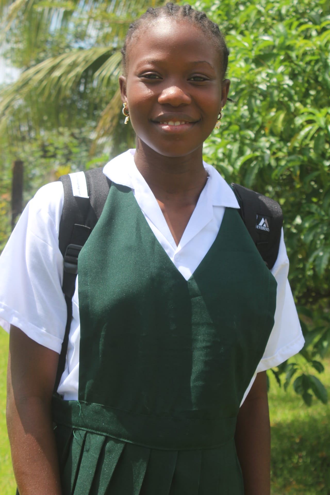 Meet Maroline, who has been generously sponsored by Dawn Sullivan. She is 10 years old and in kindergarten-2 this year. Maroline lives in Sanniquellie, Liberia with her parents and 8 siblings. Three of the siblings are in school and the remaining five are not. Maroline said during our interview; “I’m nervous because the chances of me getting sponsored by Girl Power are not in my favor. I’m scared to my stomach because I really want to go.” She was SO surprised and so grateful for this opportunity to go to school this year! She hopes to be a teacher when she grows up.