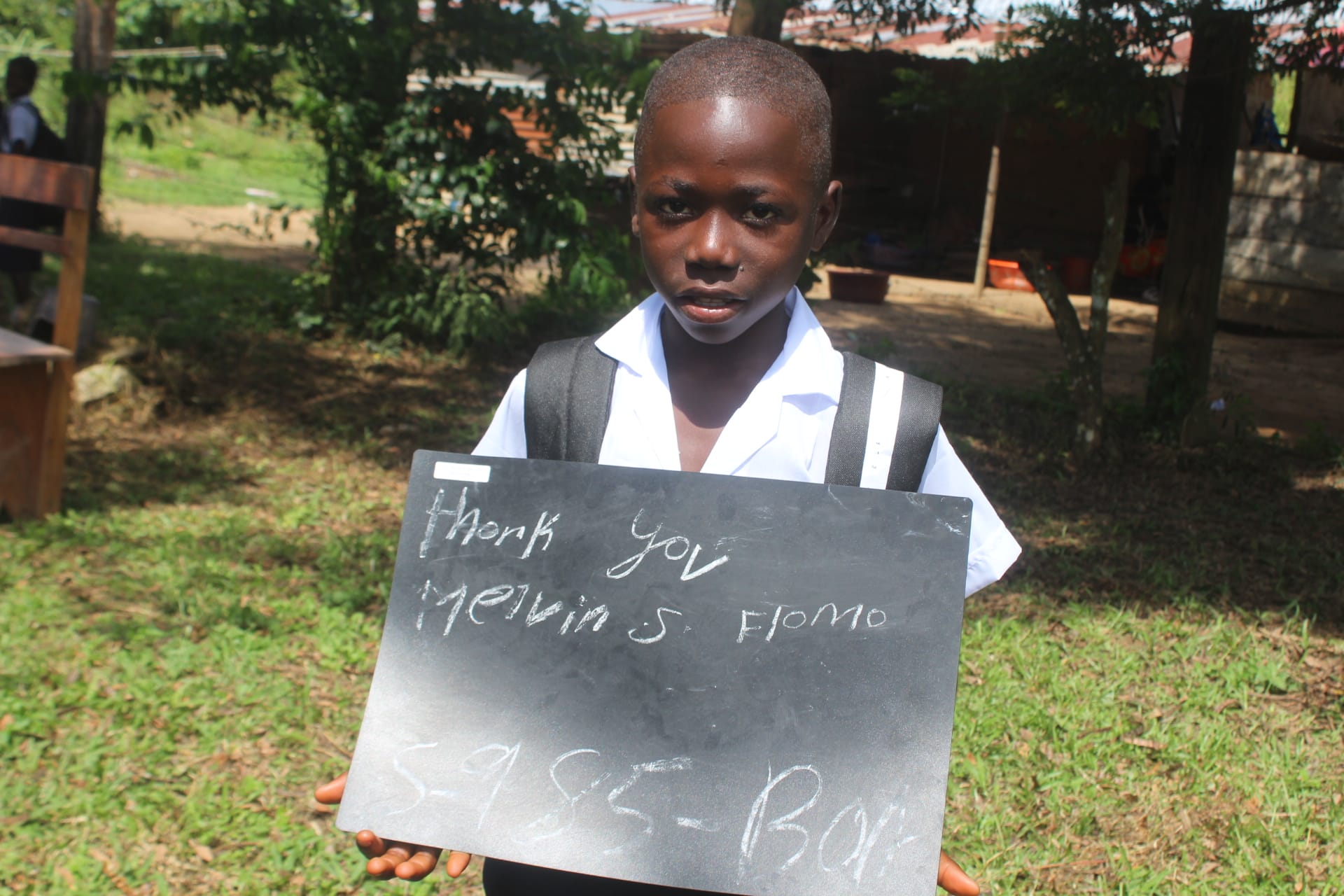 Melvin has been promoted to the second grade this year and is very excited to continue his education. He says he is extremely grateful for the opportunity to go to school and takes his studies very seriously. According to his teacher, Melvin is a hardworking student who is focused and determined to do well in class. After school, Melvin goes home and, with his friends, walks to the creek to draw water for his family to use for cooking. On Saturdays, he helps wash clothes for himself and the rest of the family at the creek. Despite his many responsibilities at home, Melvin remains committed to his education and dreams of one day becoming a teacher, just as he has always hoped. His resilience, dedication, and gratitude inspire those around him, and with continued support, Melvin is well on his way to a bright future.