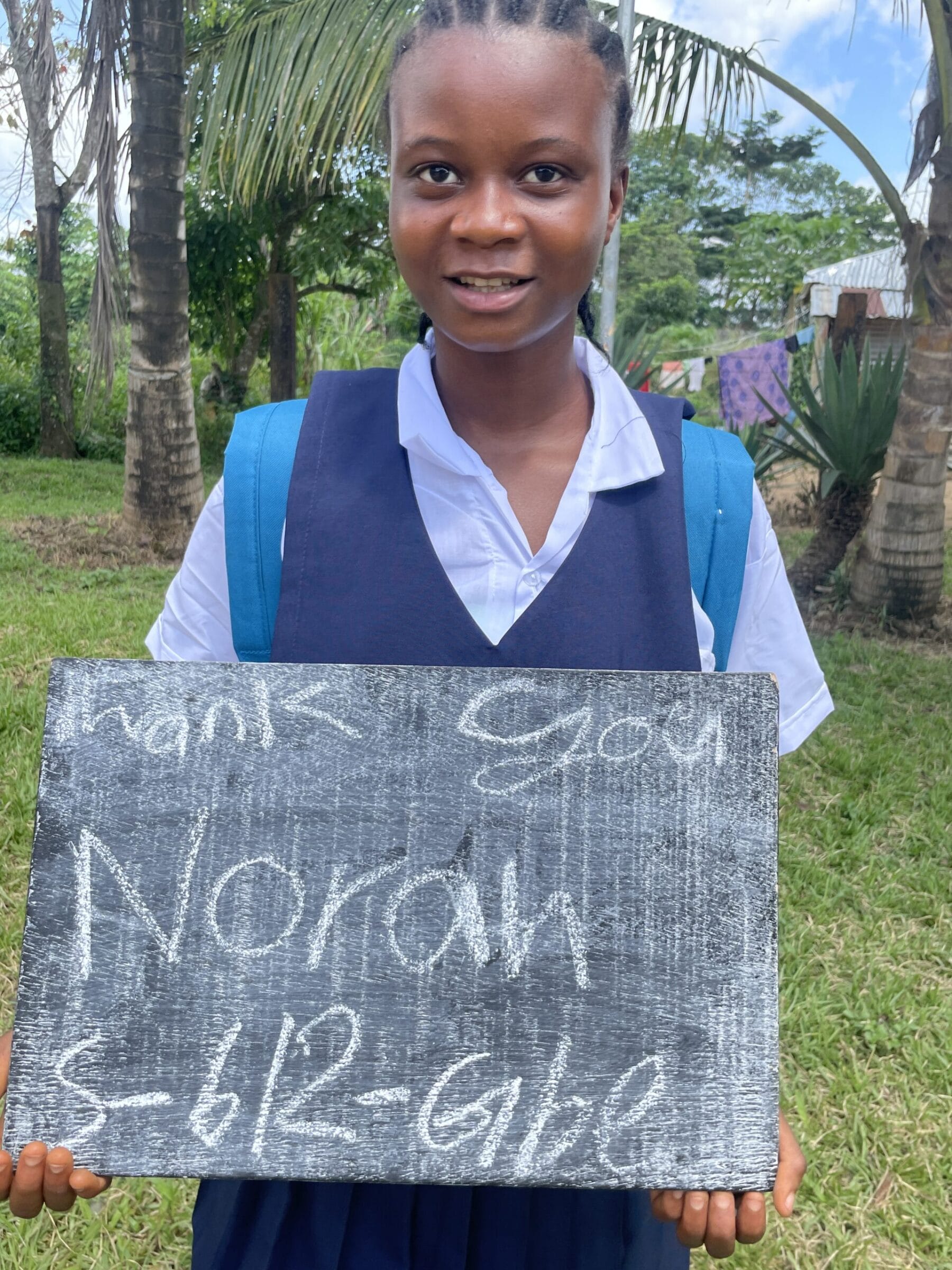 Meet Nora, who has been generously sponsored by Lori Fischer Hall. She is 9 years old and in the K-2 grade this year. She lives in Gbayden, Liberia with her widowed mother. Nora’s father died several years ago when the gold mine he was working at clasped, killing all 12 people who were digging for gold at the time. Her interests are singing and she hopes to be a nurse when she grows up.
