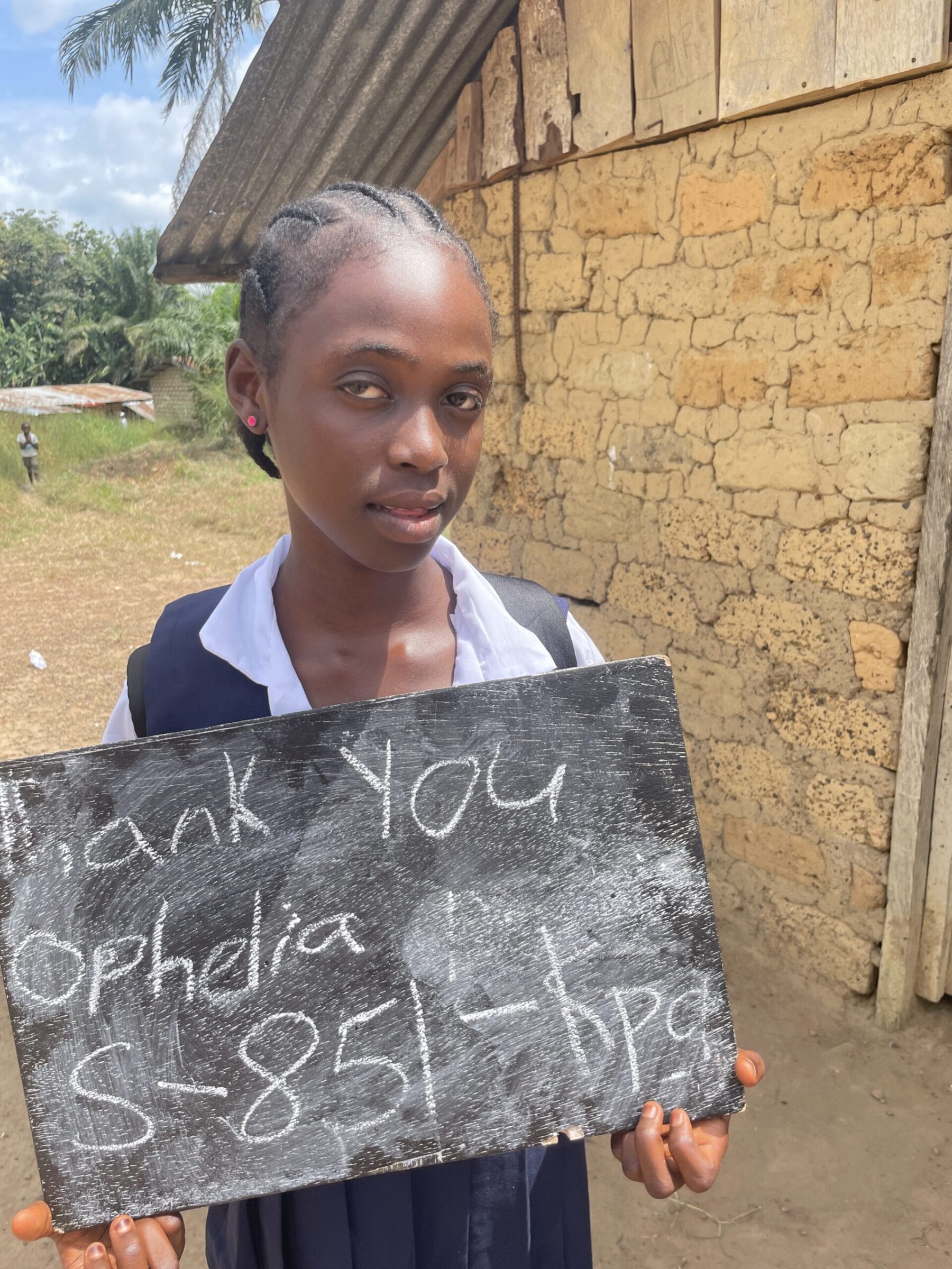 Ophelia is promoted to second grade and is one step closer to becoming an immigration officer one day. She continues to live with her grandparents. Ophelia’s favorite subject is reading and math and her favorite food is rice with fried potato greens. Sponsored by: Bernadette Maurice