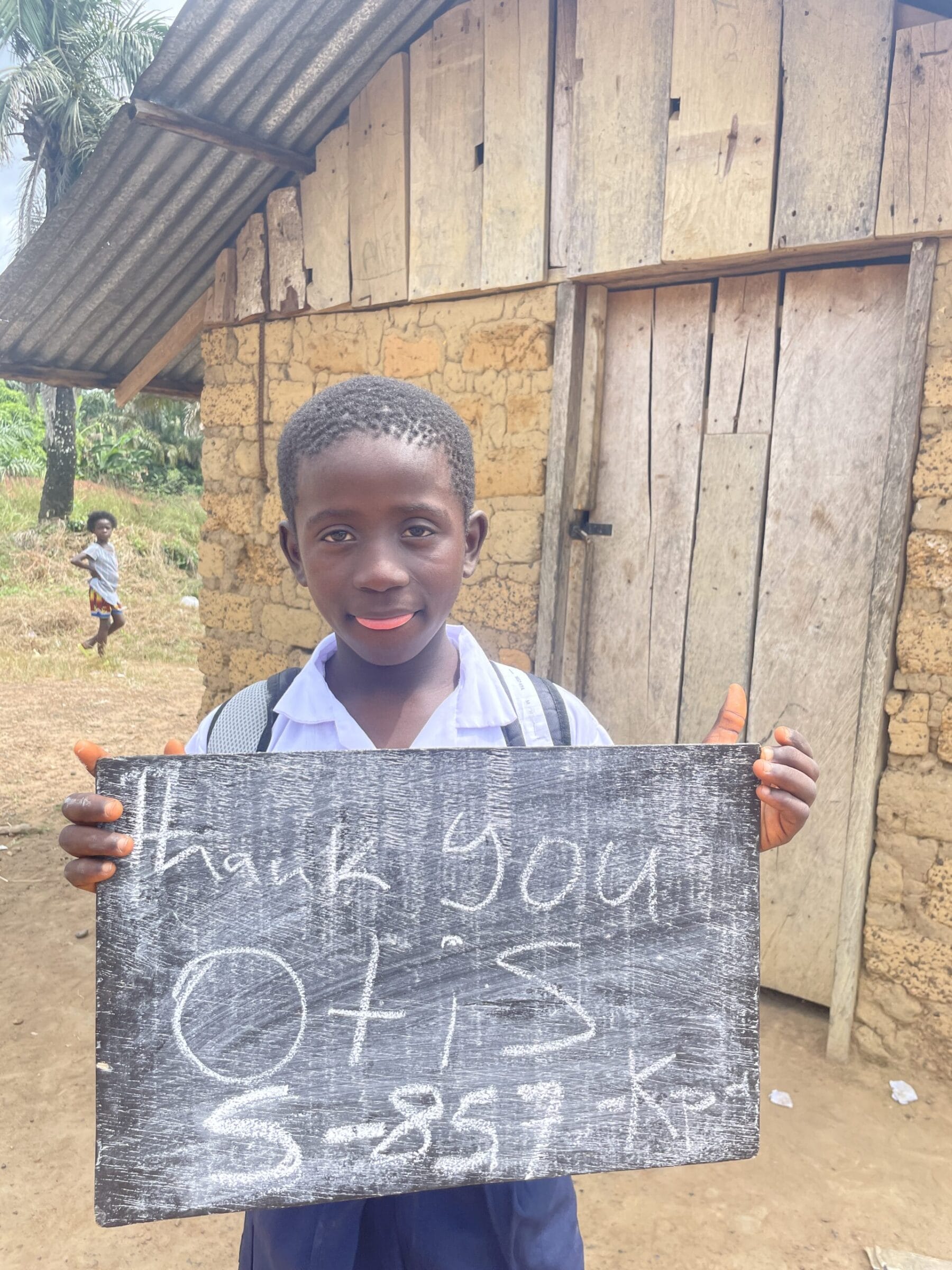 Otis has been promoted to the third grade! He continues to live with his grandmother and still dreams of becoming a pilot one day. Otis shared that despite never having been to an airport or on an airplane, he loves waving at airplanes when they fly over his village. He told our team that even though he can’t see the people in the plane, he knows there’s people waving back to him. Sponsored by: Sarah Mani