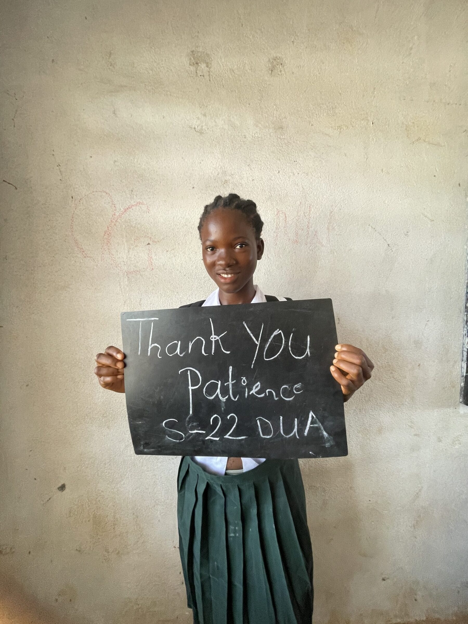 Patience was promoted to the 7th grade this year, and her new favorite subject is science. Despite living in a deplorable and difficult situation with her mother, Patience is determined to rise above her challenges. She and her mother live in a “math round,” which is barely a house, and her father remains extremely ill, unable to provide any financial support to the family. In spite of these hardships, Patience is very serious about her education. She attends school regularly and is deeply committed to breaking free from the poverty they face. After school, she helps her family by drawing water and cooking. Her teachers speak highly of her dedication and perseverance, describing her as a hardworking and committed student. Patience is an inspiration, showing remarkable strength and determination to create a brighter future for herself and her family. Sponsored by: Jane Burnett