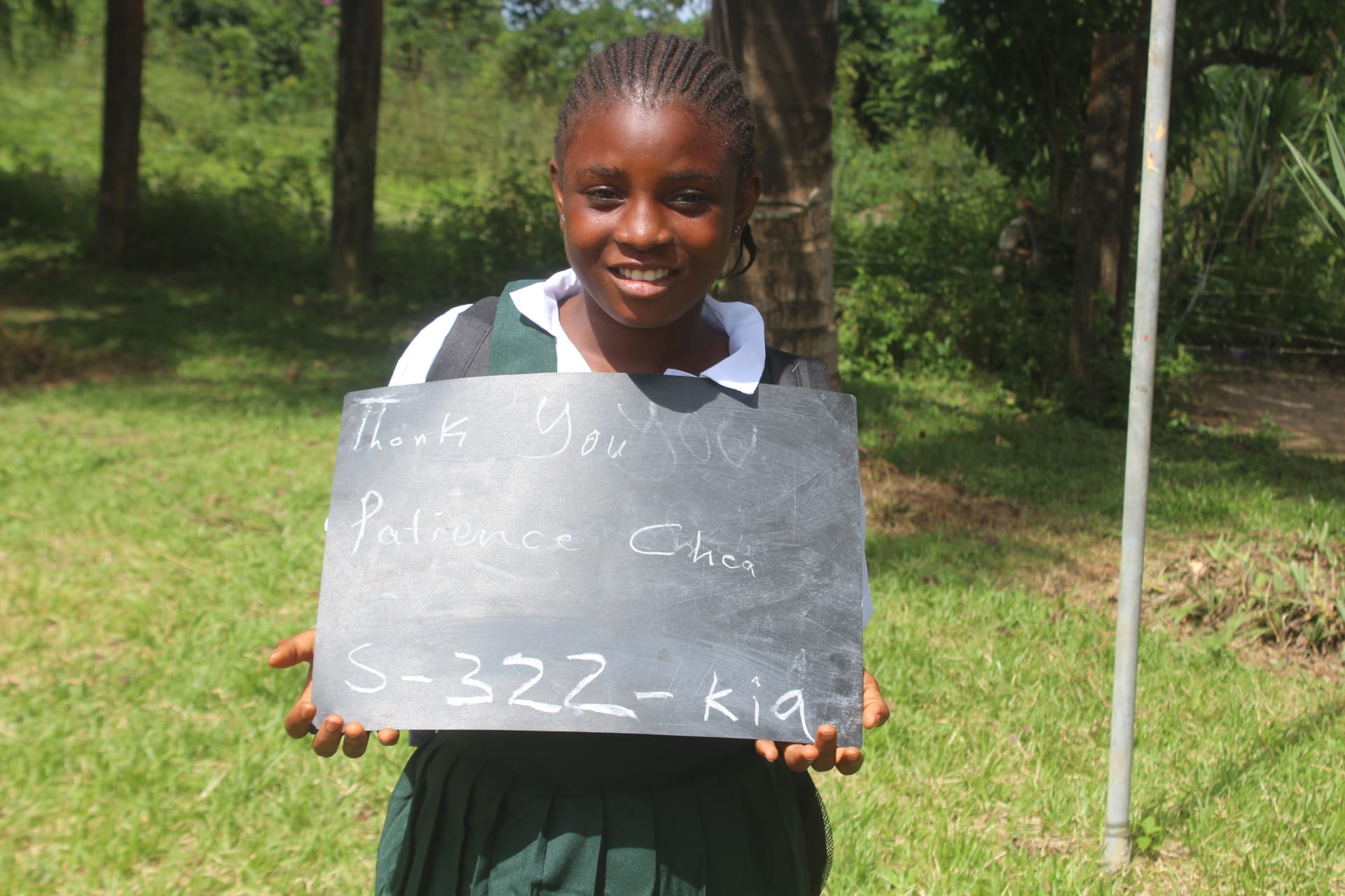When we arrived at her campus, Patience was recovering from a recent motorbike accident. On her way to school, she was hit by a transport motorbike. Motorbikes are the main mode of transport for rural areas and regrettably, many are driven by inexperienced, reckless drivers. The good news is that she was promoted to the 3rd grade class. But her classroom performance was not too good due to the motorcycle accident. Patience is looking forward to the upcoming school year. Sponsored by: Phil Vasby