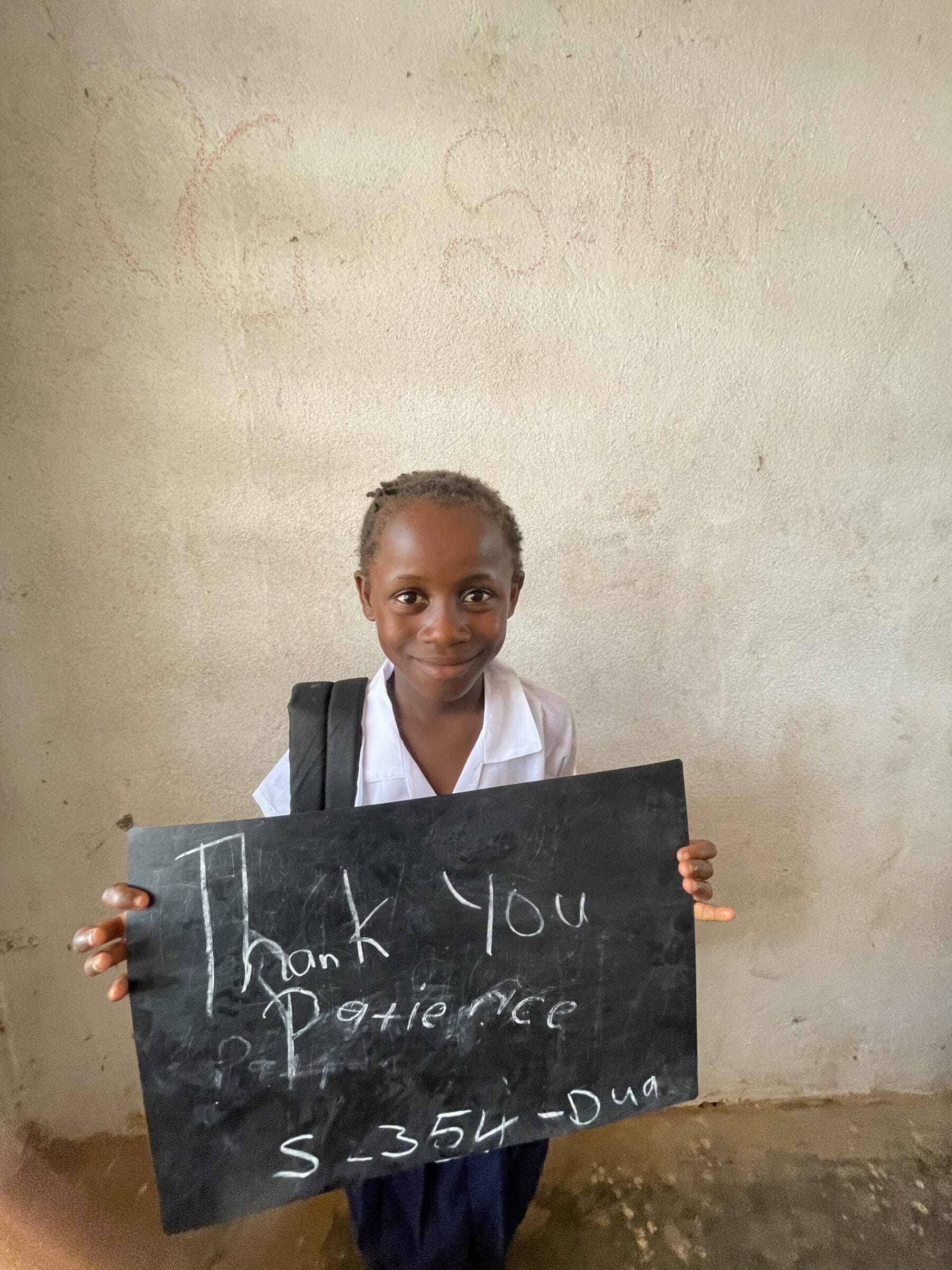Patience arrived at GPA registration smiling ear to ear, proud of herself and filled with excitement to share the news with us: she was promoted to the first grade! It’s been a year of hard work and determination for her, and we are incredibly proud of her achievements. She still dreams of becoming a nurse one day and continues to live with her mother. Sponsored by: Tera Reese-Beisbier