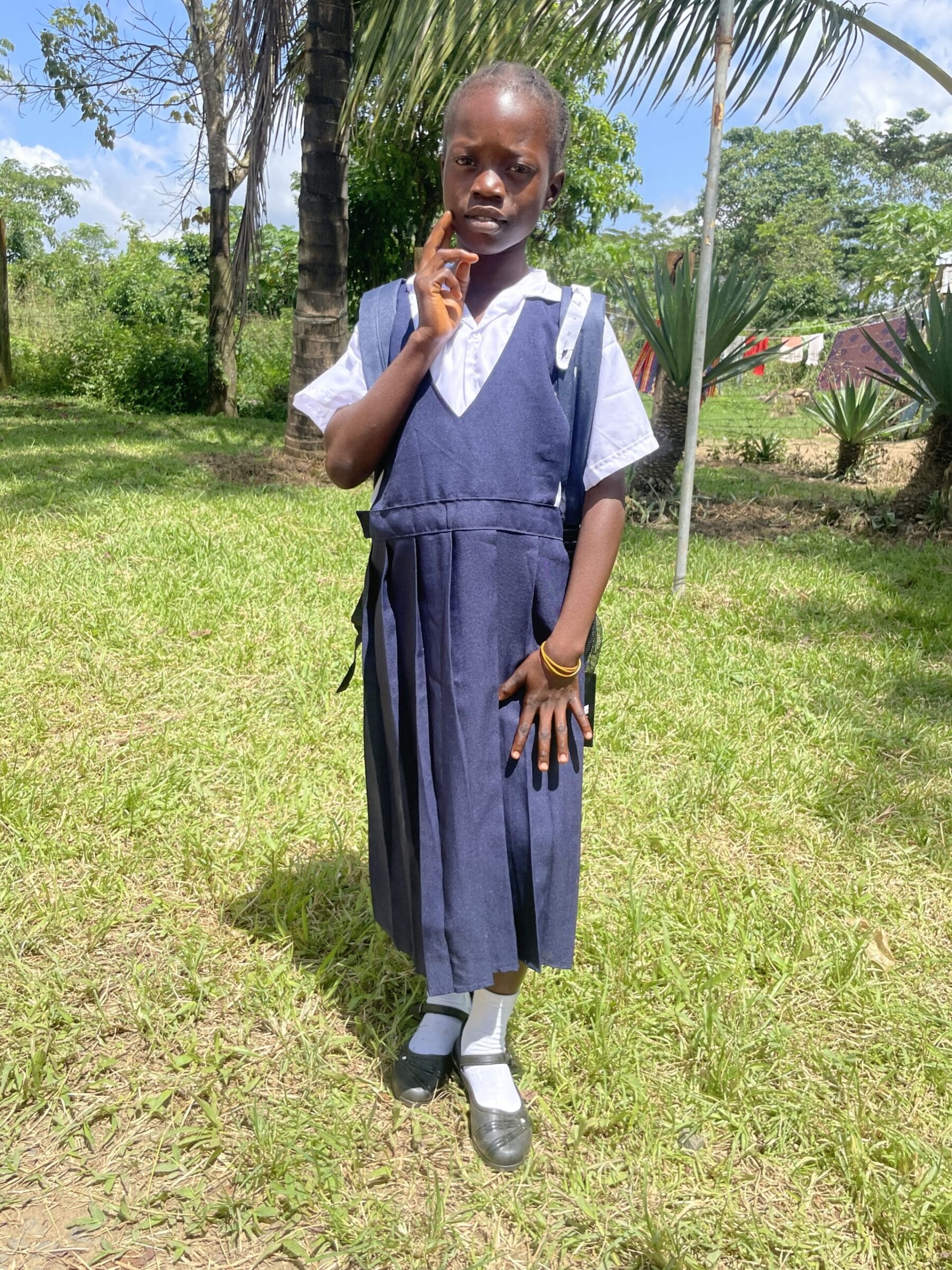 Thanks to the generous donation from Patty Glennon, Pauline has been re-enrolled into school for the 2021/2022 school year. She received an incomplete for the 2020-2021 school year. Due to COVID-19 outbreak, schools in Liberia had irregular school schedule. This combined with the lack of technology in the schools, some schools made the decision to keep students in their current grade level for the 2021-2022 school year. Pauline was kept in her current grade level of ABC grade for the upcoming school year. She continues to live with her uncle and still wants to be a teacher when she grows up.
