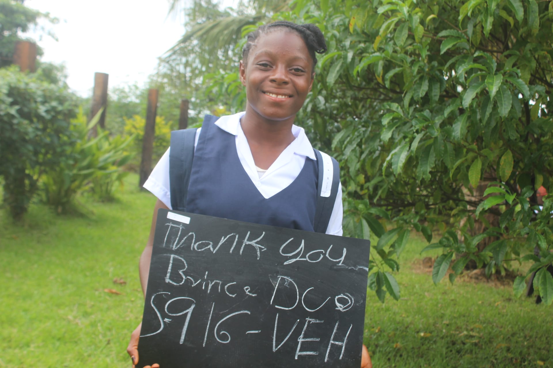 Brince is eleven years old and in second grade. She lives with her mother in Vehyipa and dreams of becoming a police officer one day. Her father abandoned the family when Brince was a baby, making it difficult for her mother to fully provide for her family. Brince likes helping her mother with household chores. Sponsored by: Camille Kearl