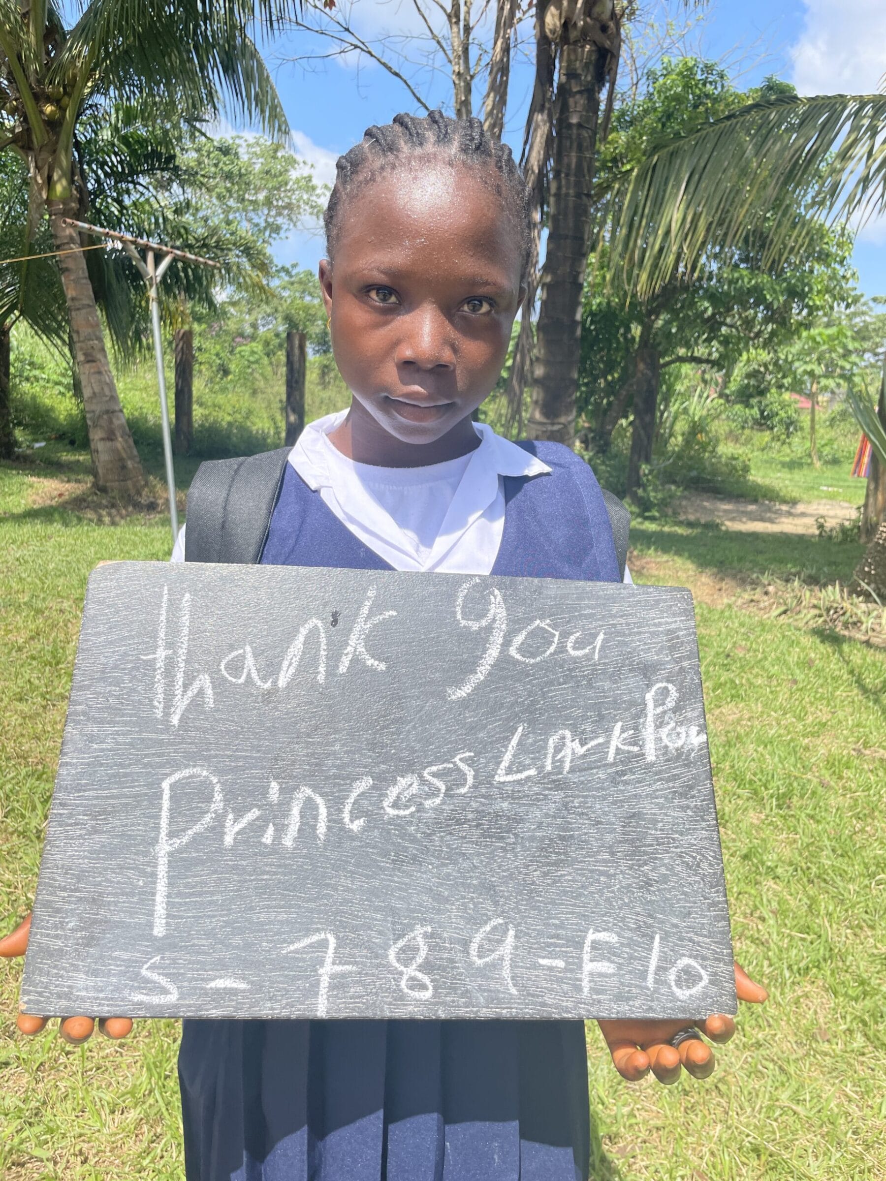 Princess wants to be a doctor one day. She is nine years old and in first grade. She lives with her parents and four siblings in the town of Flowin, Liberia. Princess sings in her church choir. Her parents are subsistence farmers and though provide a loving and supportive household, their income cannot sustain continuous school enrollment for Princess. Sponsored by: Pam Albi