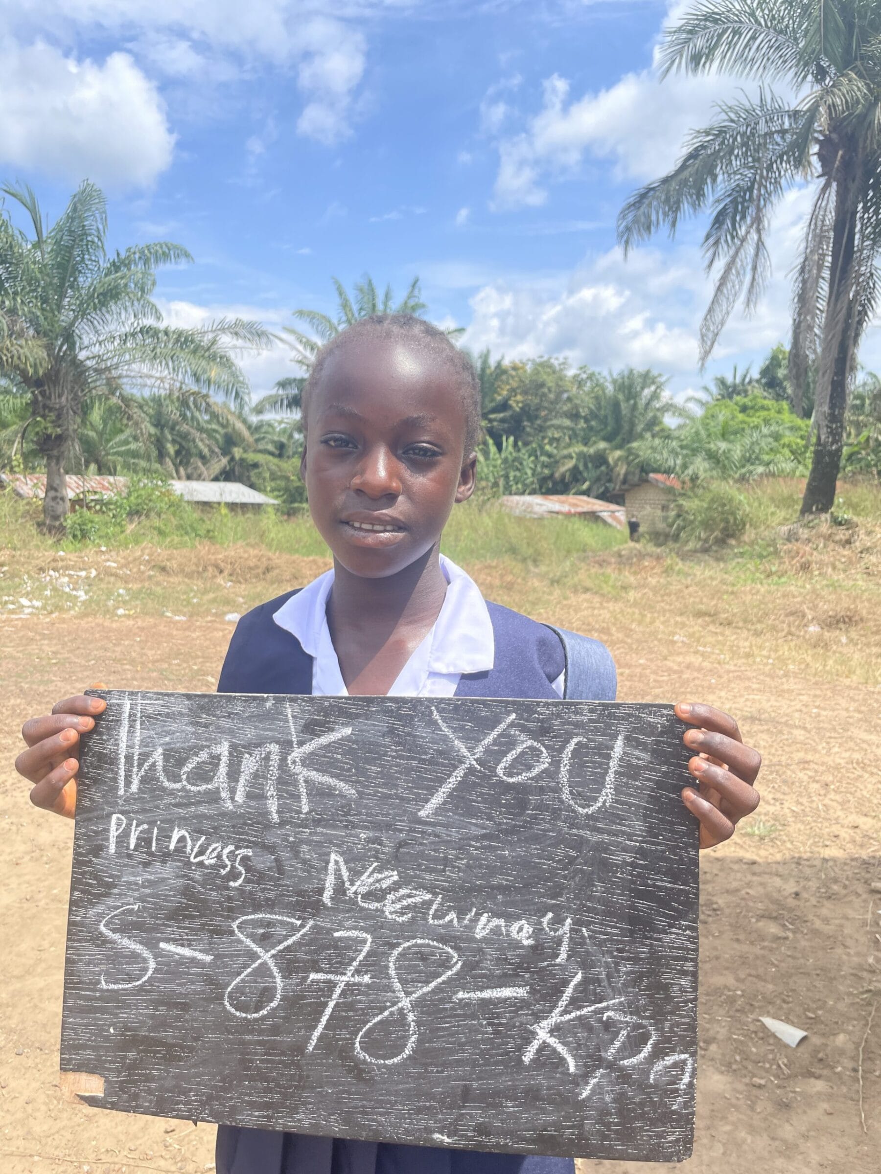 Princess received a double promotion to the first grade this year and is excelling as a student. Despite missing her mom and dad greatly, she is persevering and improving in her lessons. At home, she shows her hardworking nature by helping to draw water and wash clothes for her family in the local creek on Saturdays. Sponsored by: Gregory Kruger