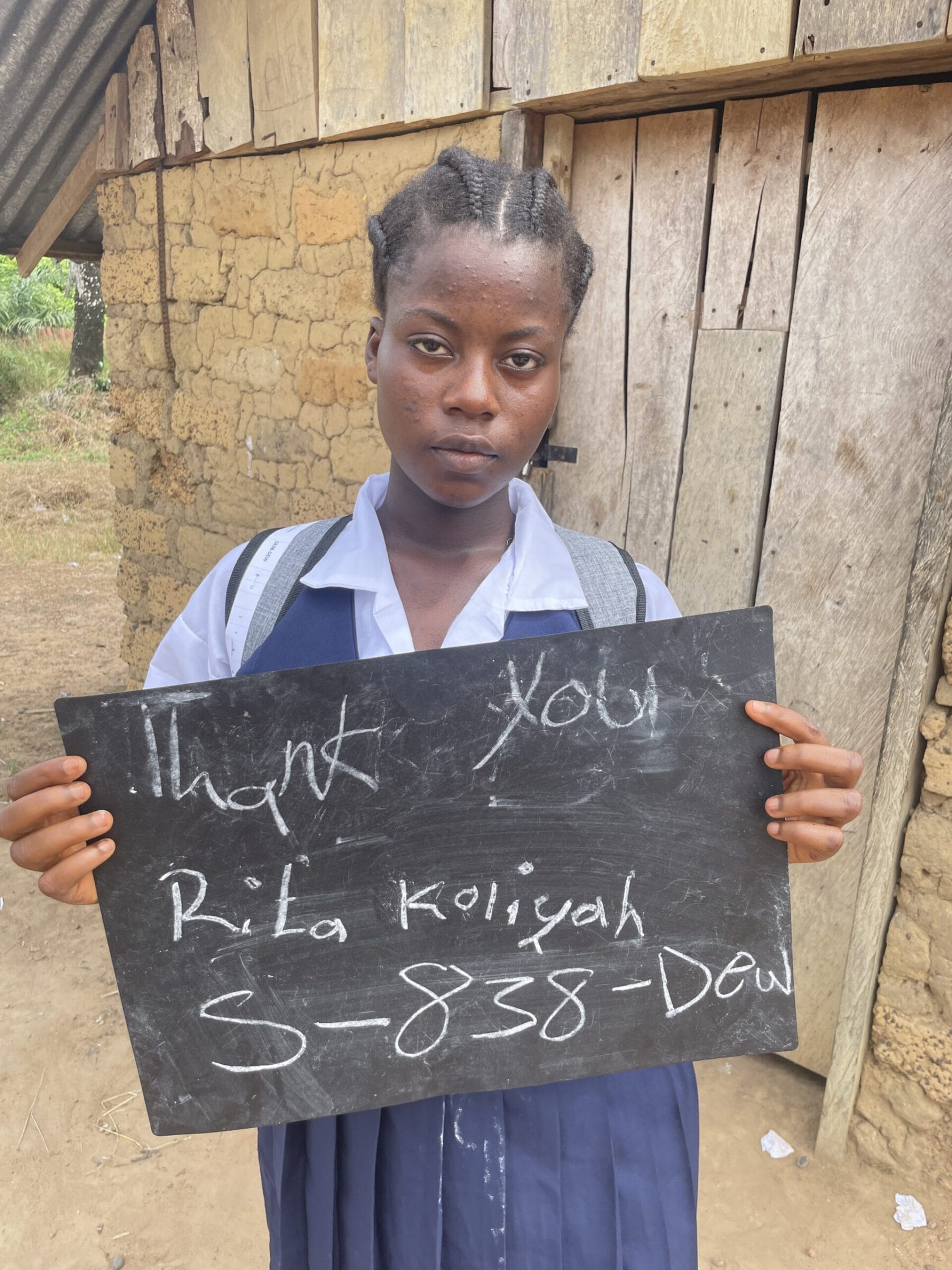 Ritta is 12 years old and is now in fifth grade after successfully completing fourth grade. She shared that Girl Power Africa continues to support her by helping cover her school needs, and she feels happy to be in school this year. Ritta said her goal is to be promoted to the next class, and she stays motivated by her grandparents. At home, she helps with cleaning for about two hours a day, and she hopes to become a doctor in the future so she can help care for others. Sponsored by: Tera Reese-Beisbier