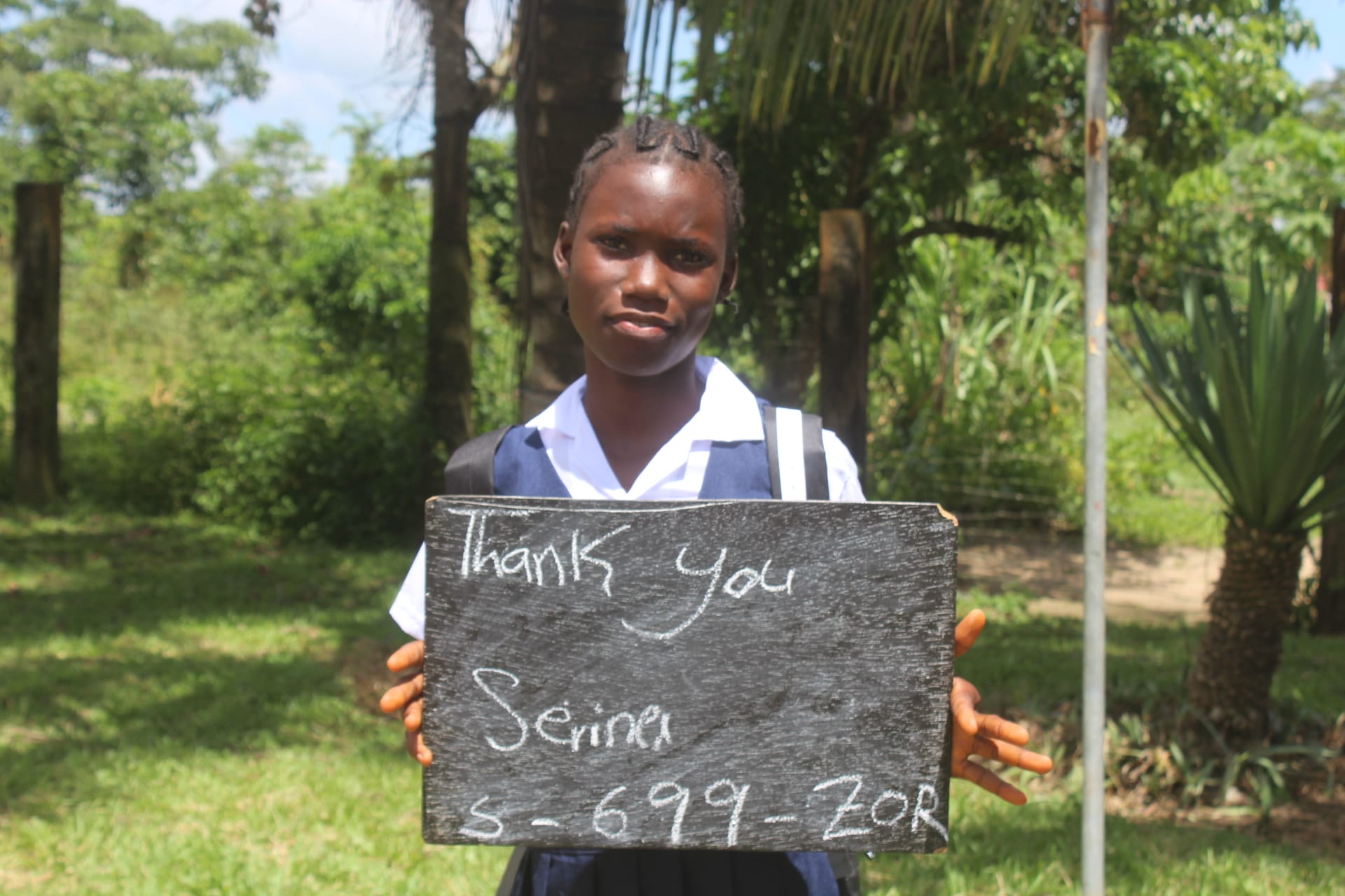 Meet Serena, who has been generously sponsored by an Anonymous donor (Mohamad). She is 9 years old and is in the 1st grade this year. She lives in Zorgowee, Liberia with her aunt. Serena’s mother died during childbirth, and no one knows who her father is. Her interests are playing with dolls and she hopes to be a teacher when she grows up.