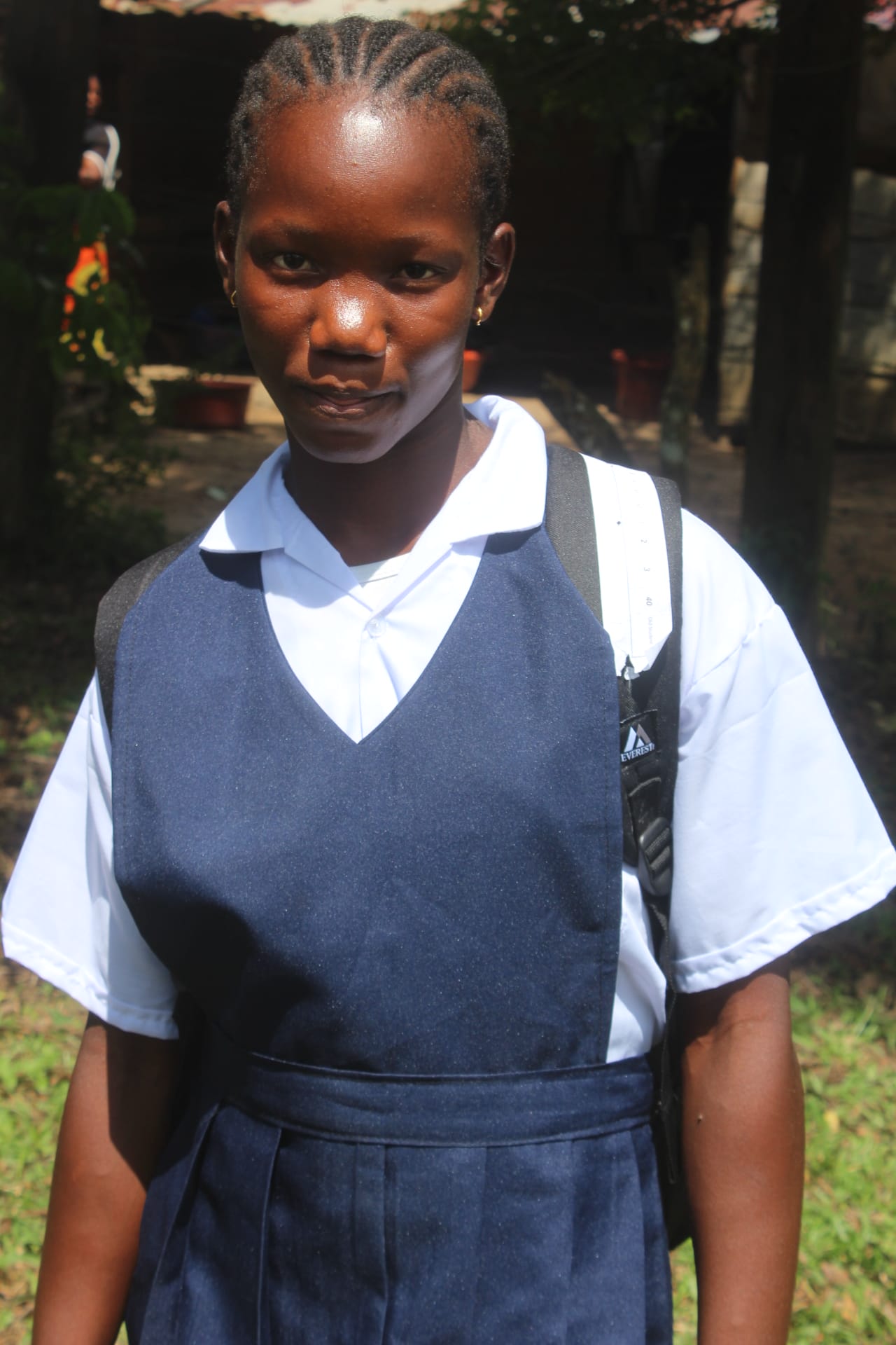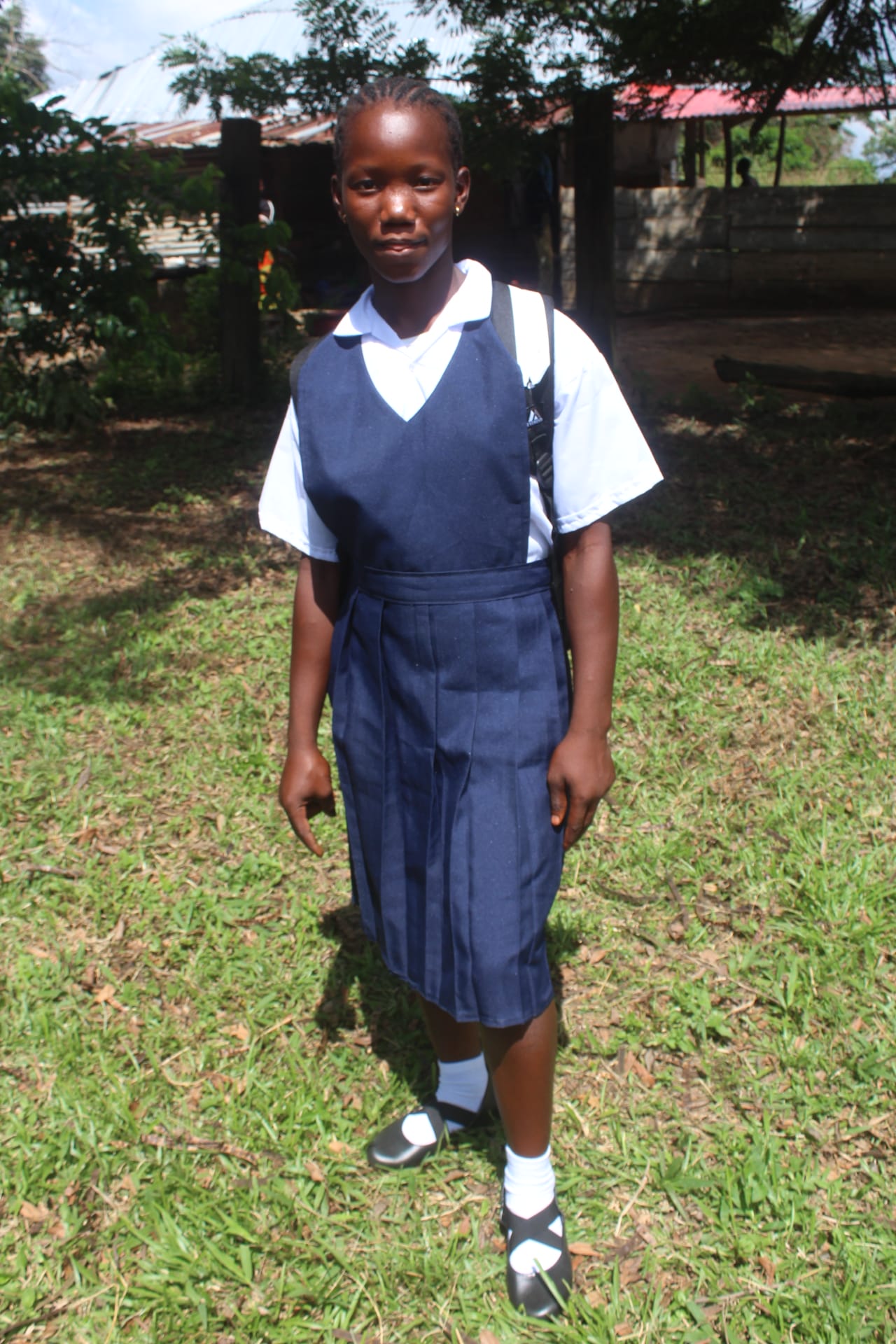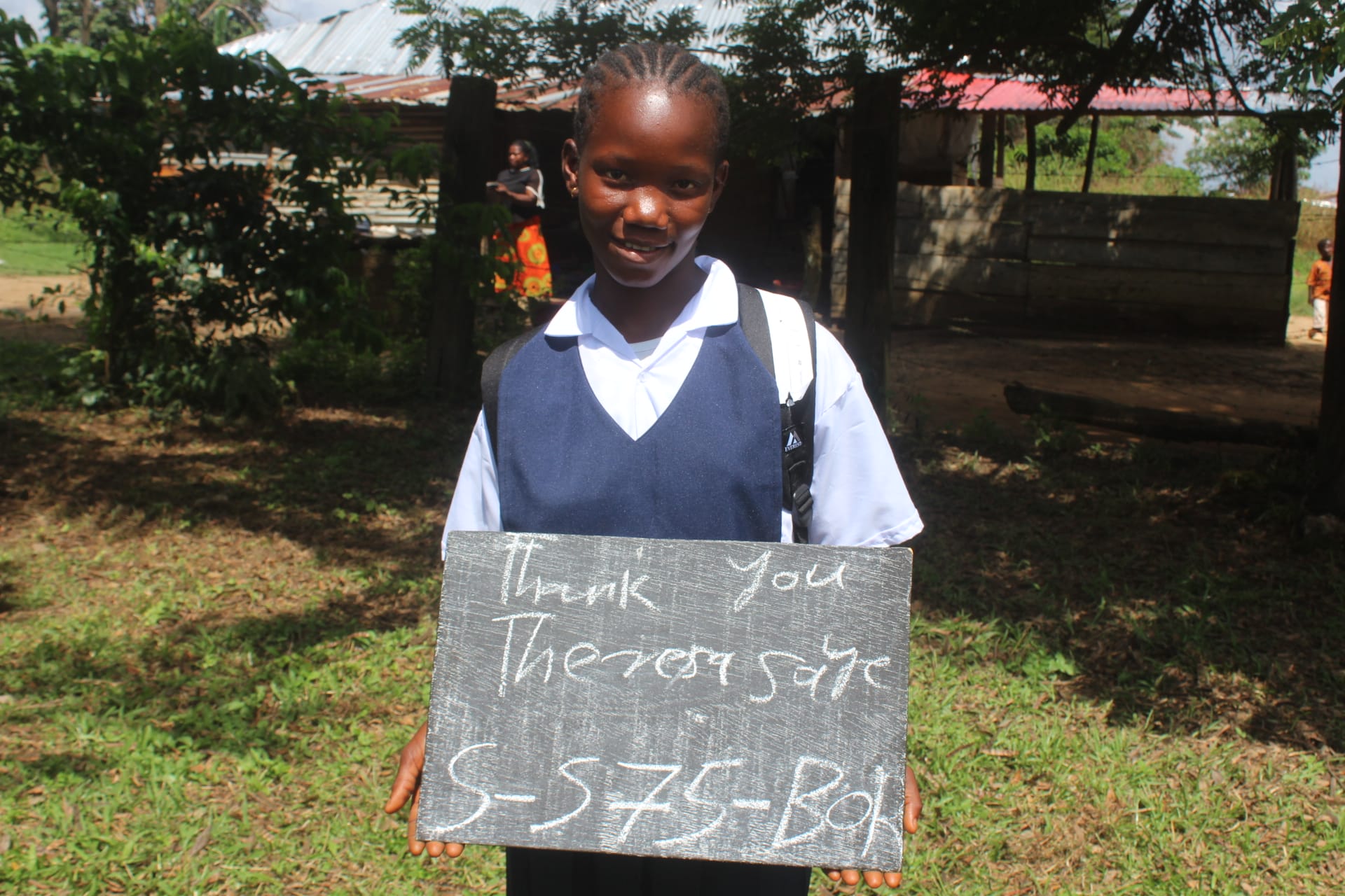 Theresa has been promoted to the third grade this year and continues to excel in her studies. Her favorite subjects are spelling and reading, and her teacher reports that she is performing extremely well in class. Theresa is a natural leader, helping classmates who are falling behind and setting a positive example for others. After school, she spends time helping her family—drawing water from the creek, going to the market to buy food, and cooking before completing her homework. Theresa is extremely grateful for the opportunity to attend school and is determined to make the most of her education.
