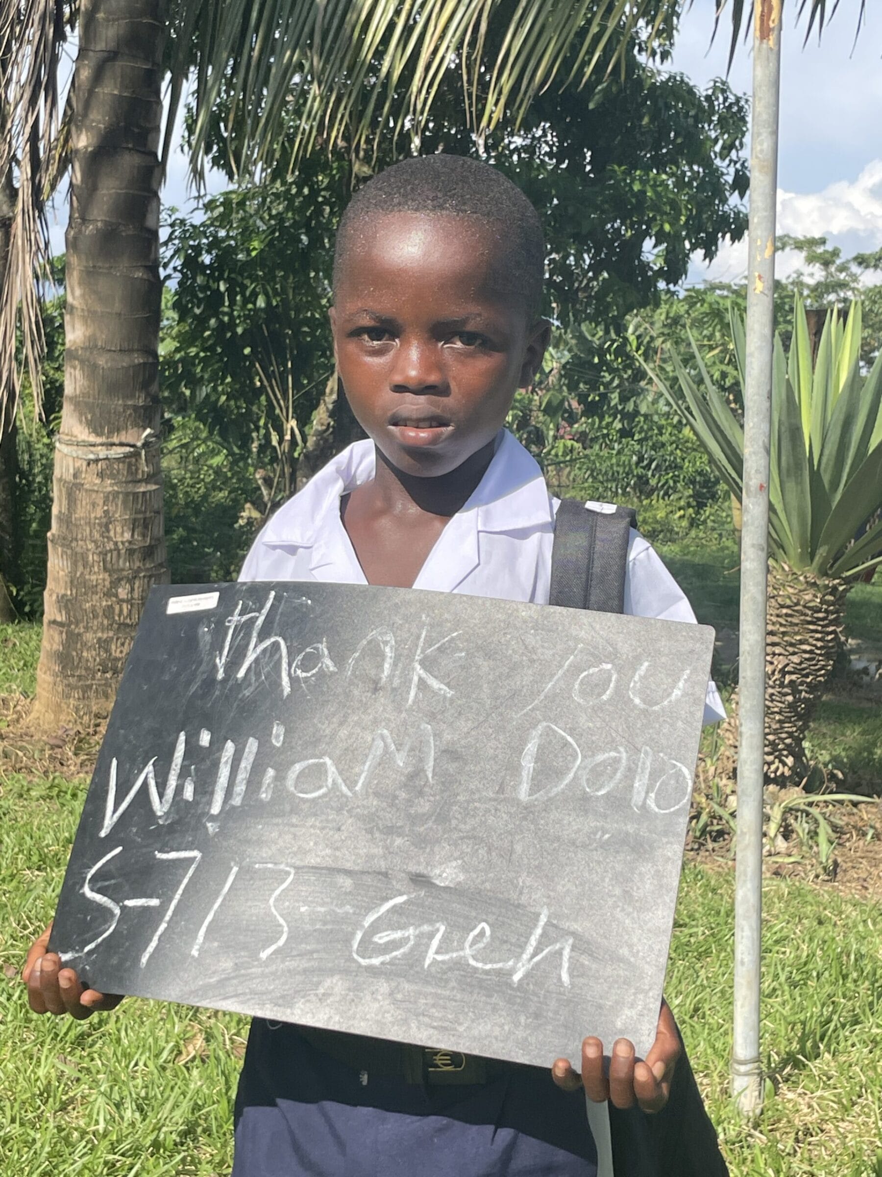 Meet William, who has been generously sponsored by Samantha Fink. He is 7 years old and in the 1st grade this year. He lives in Gehwee Town, Liberia with his father. William’s father has 7 children. He told our team: “When a father has to choose between feeding his children or sending them to school, feeding them becomes a priority.” William’s interests are learning so he can come home and teach his siblings. His big goal is to help his father to send the rest of his siblings to school one day. William hopes to be a nurse when he grows up.